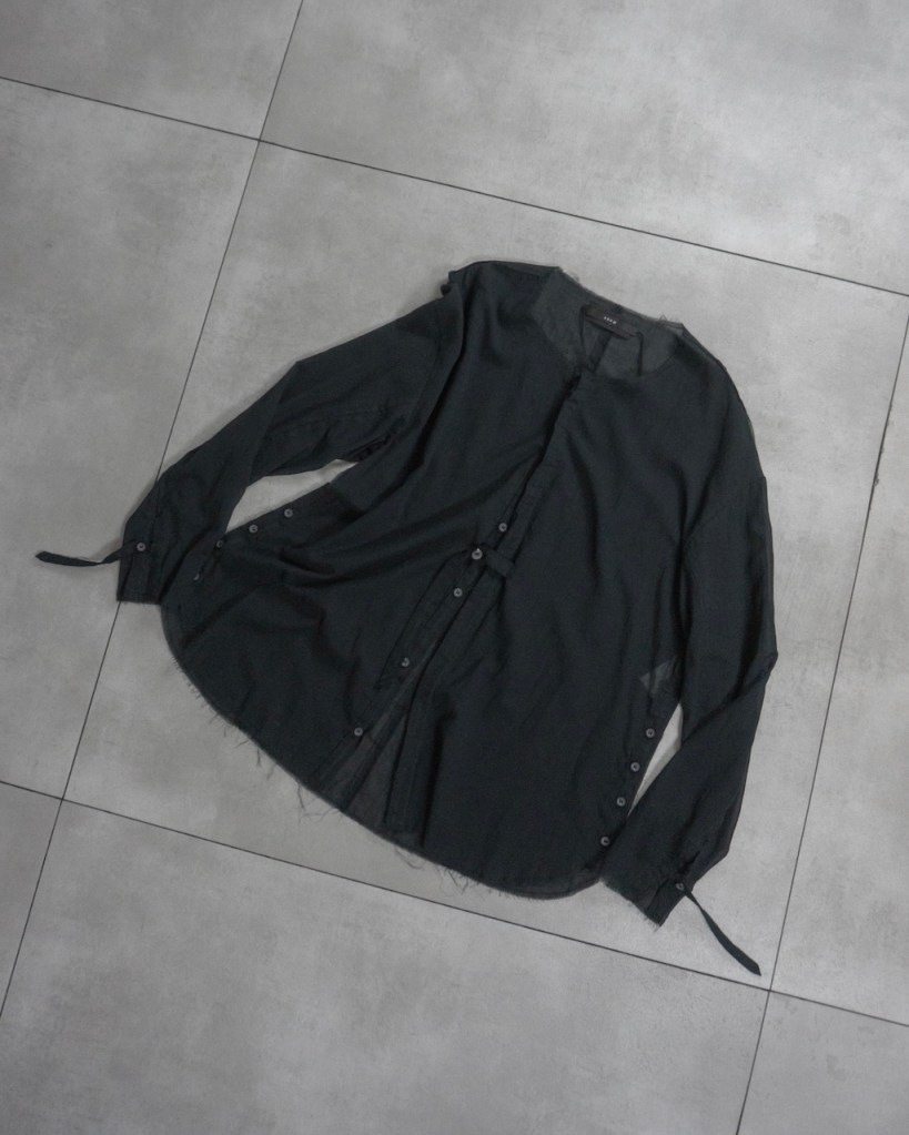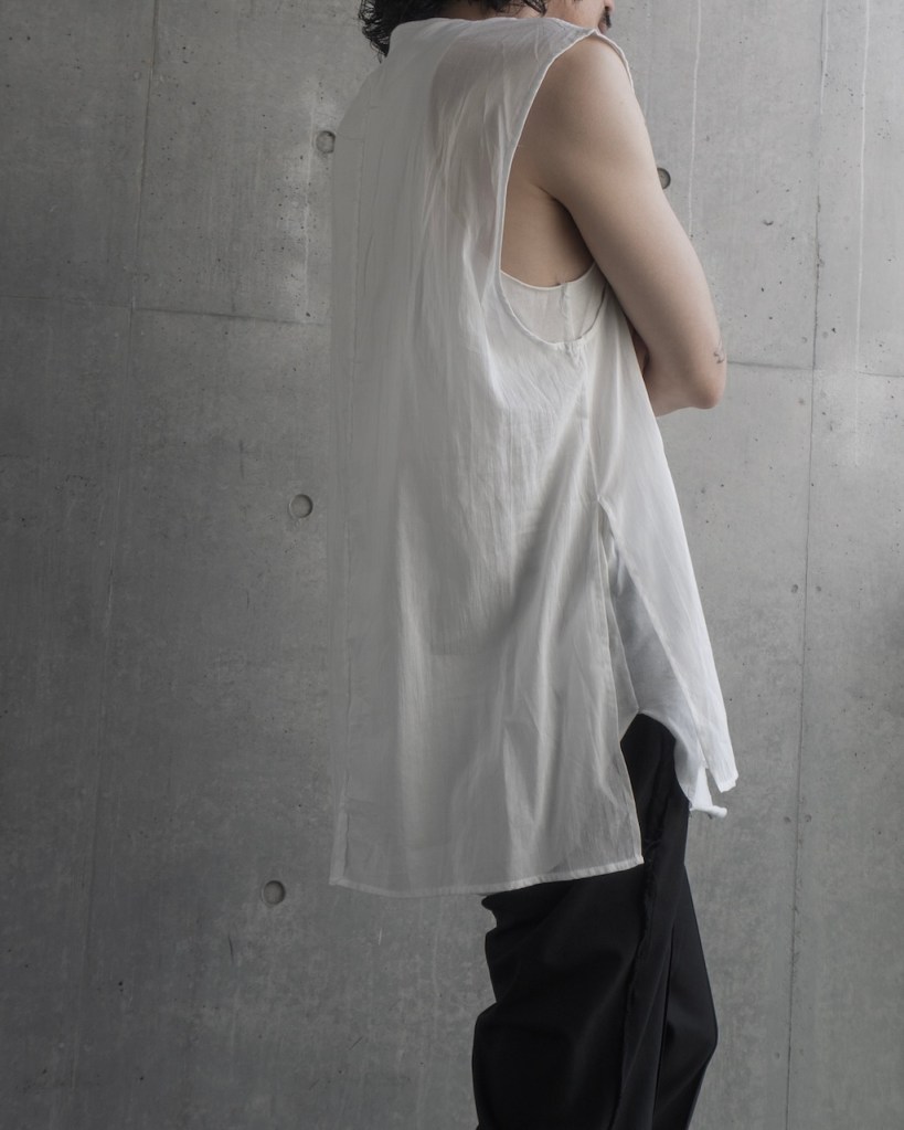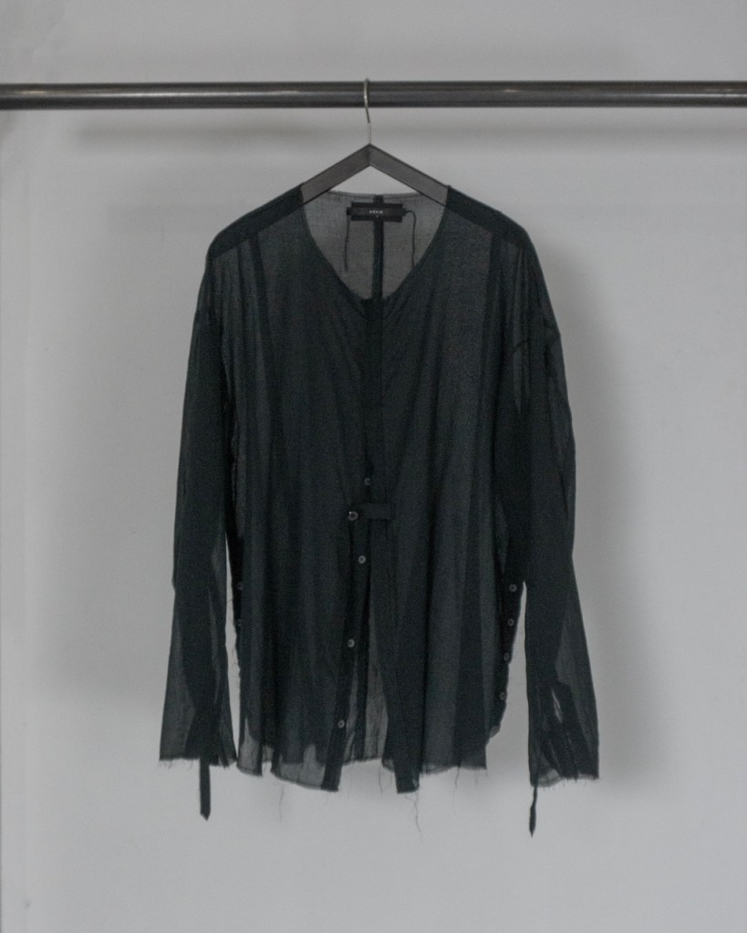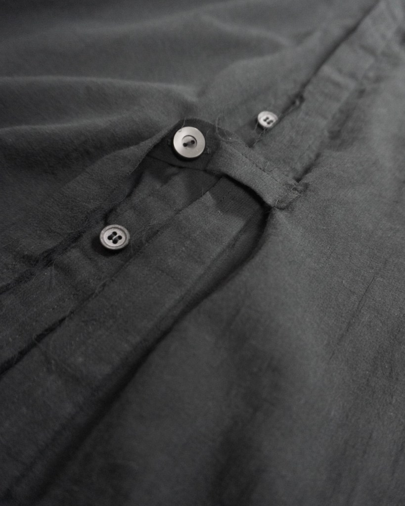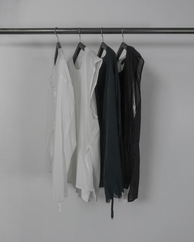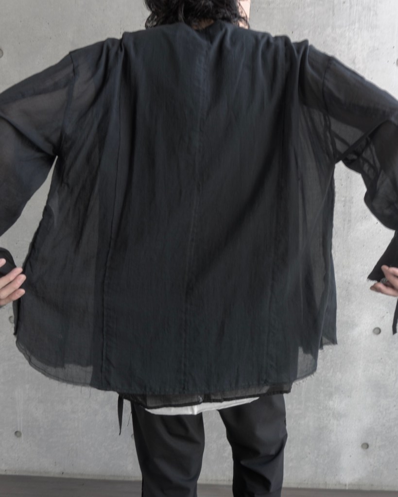 ASKYYのクリエイションにおいてこれまで一貫してきたのは一型一型への全集中であり、個々の完成度こそが正義であると信じてきました。しかし、今回初めて「対」を前提としたものづくりに挑みました。量子力学における量子もつれのような相互性。一方がAであれば、もう一方は必然的にBである。両者があって初めて成立する整合性。それは、ありふれたセットアップや同素材のレイヤードといった短絡的な手法とは一線を画します。今までセパレートという概念もとりいれて作成してきましたが、それとも違う。今回はレイヤードを分解し、セパレートし、その単体をそれぞれ拡張させるという新たな挑戦。