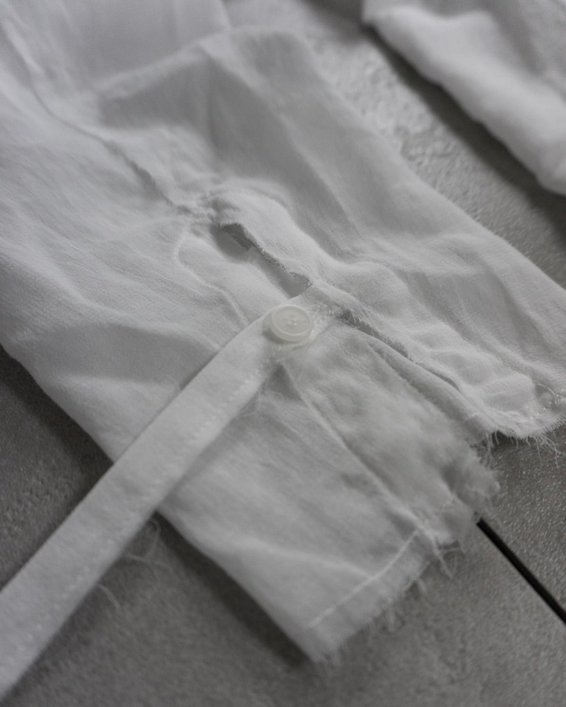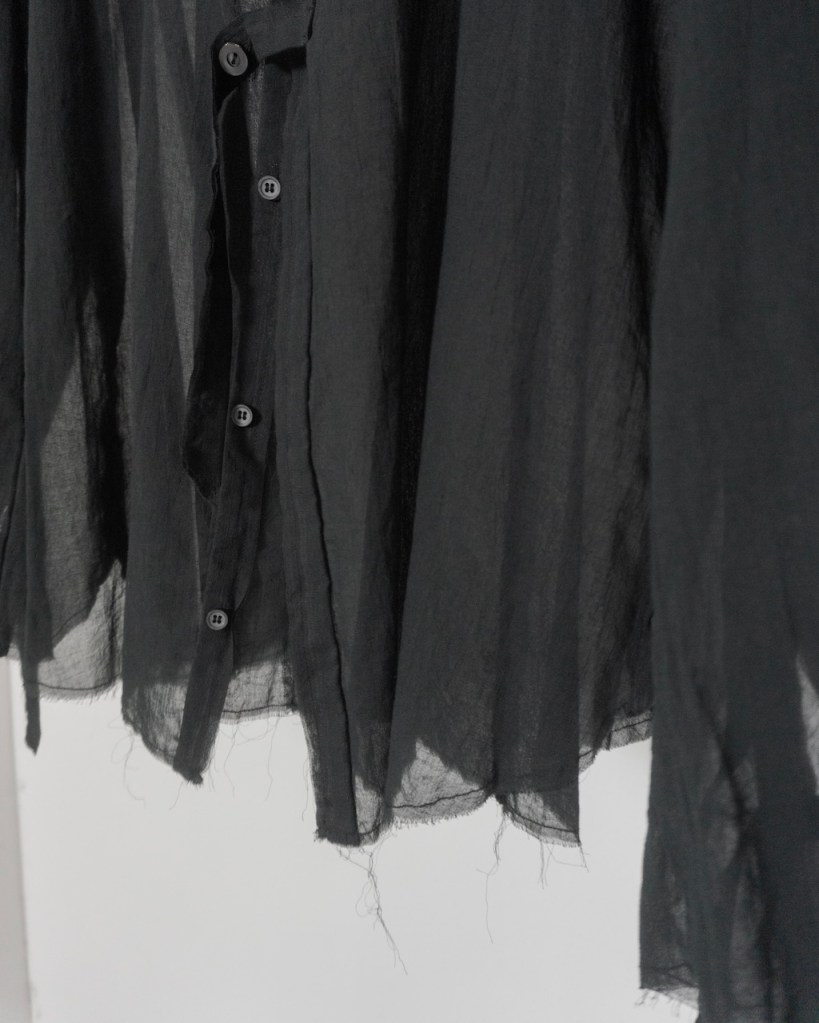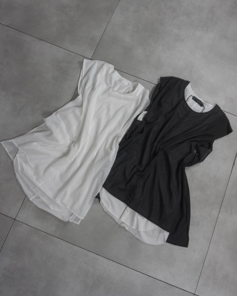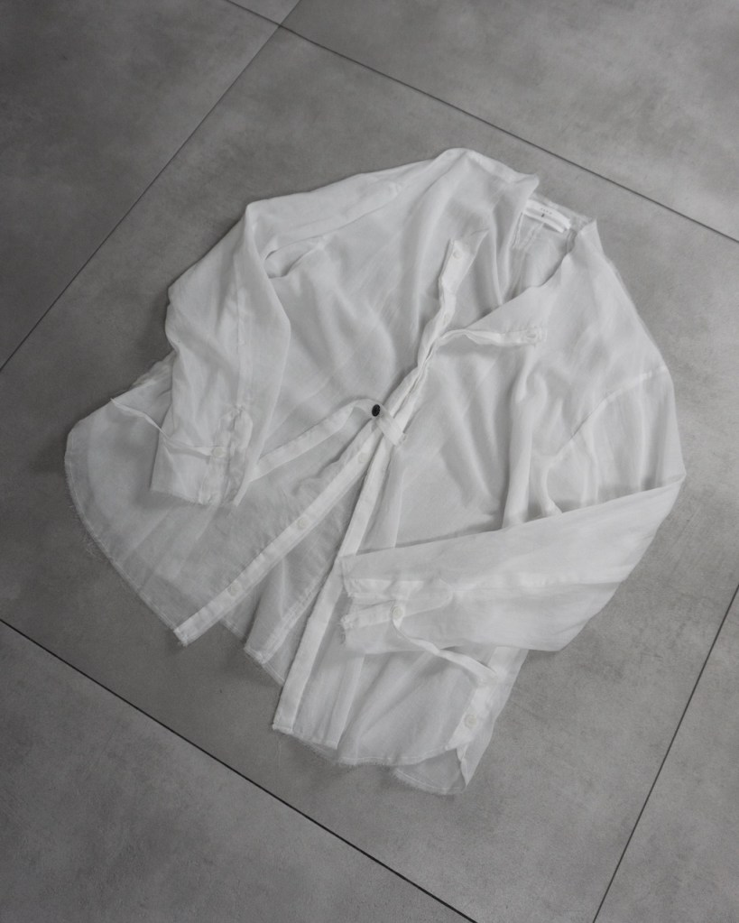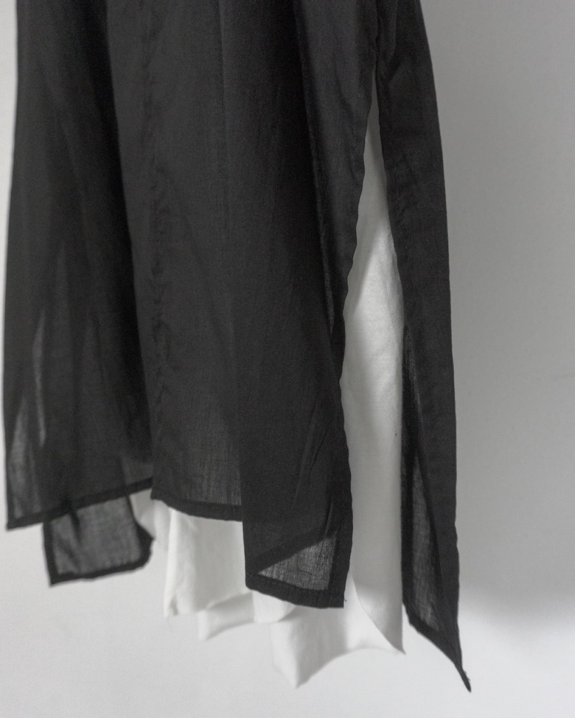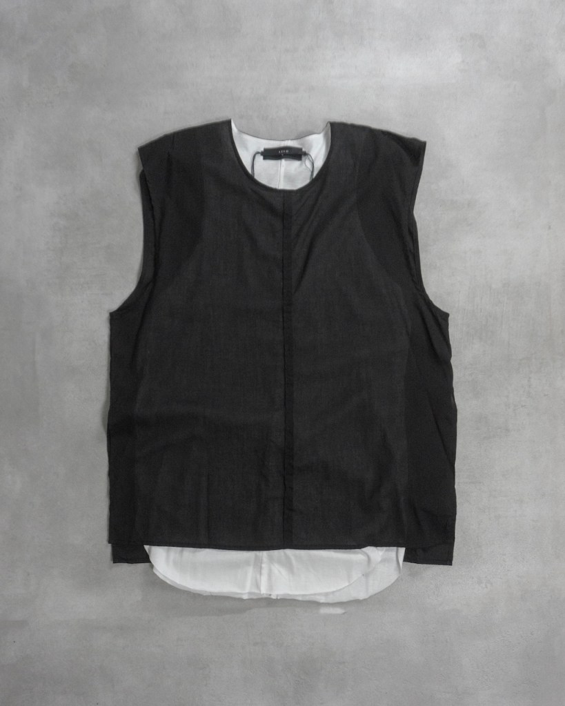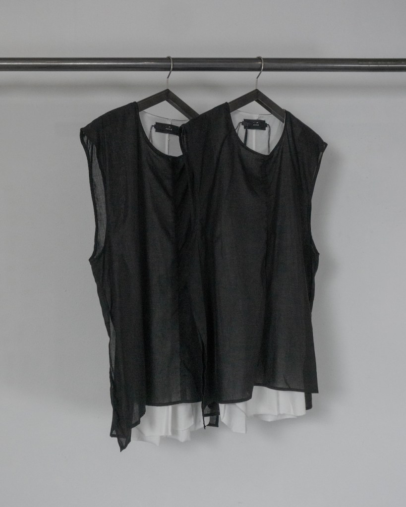 ASKYYのクリエイションにおいてこれまで一貫してきたのは一型一型への全集中であり、個々の完成度こそが正義であると信じてきました。しかし、今回初めて「対」を前提としたものづくりに挑みました。量子力学における量子もつれのような相互性。一方がAであれば、もう一方は必然的にBである。両者があって初めて成立する整合性。それは、ありふれたセットアップや同素材のレイヤードといった短絡的な手法とは一線を画します。今までセパレートという概念もとりいれて作成してきましたが、それとも違う。今回はレイヤードを分解し、セパレートし、その単体をそれぞれ拡張させるという新たな挑戦。