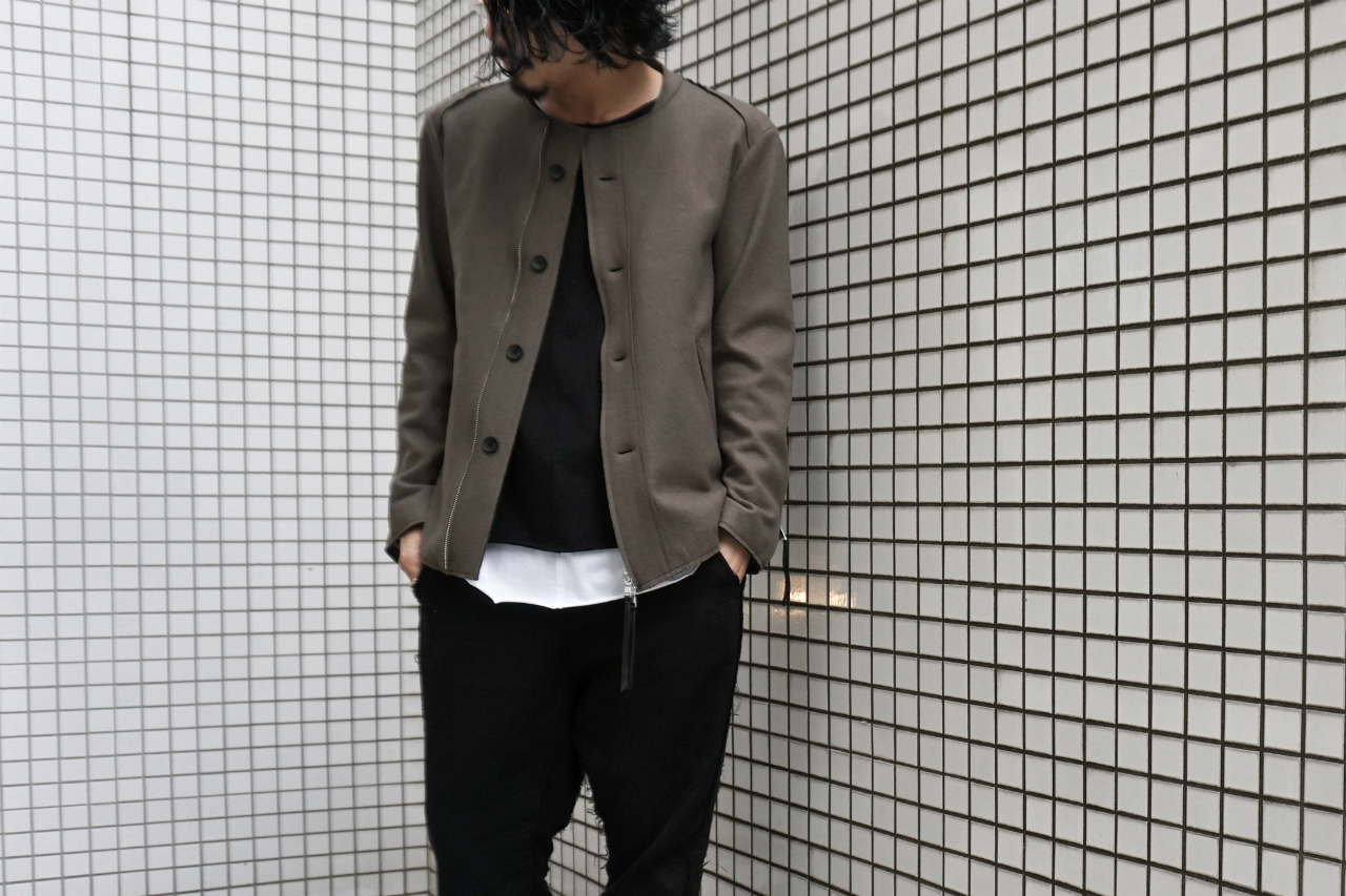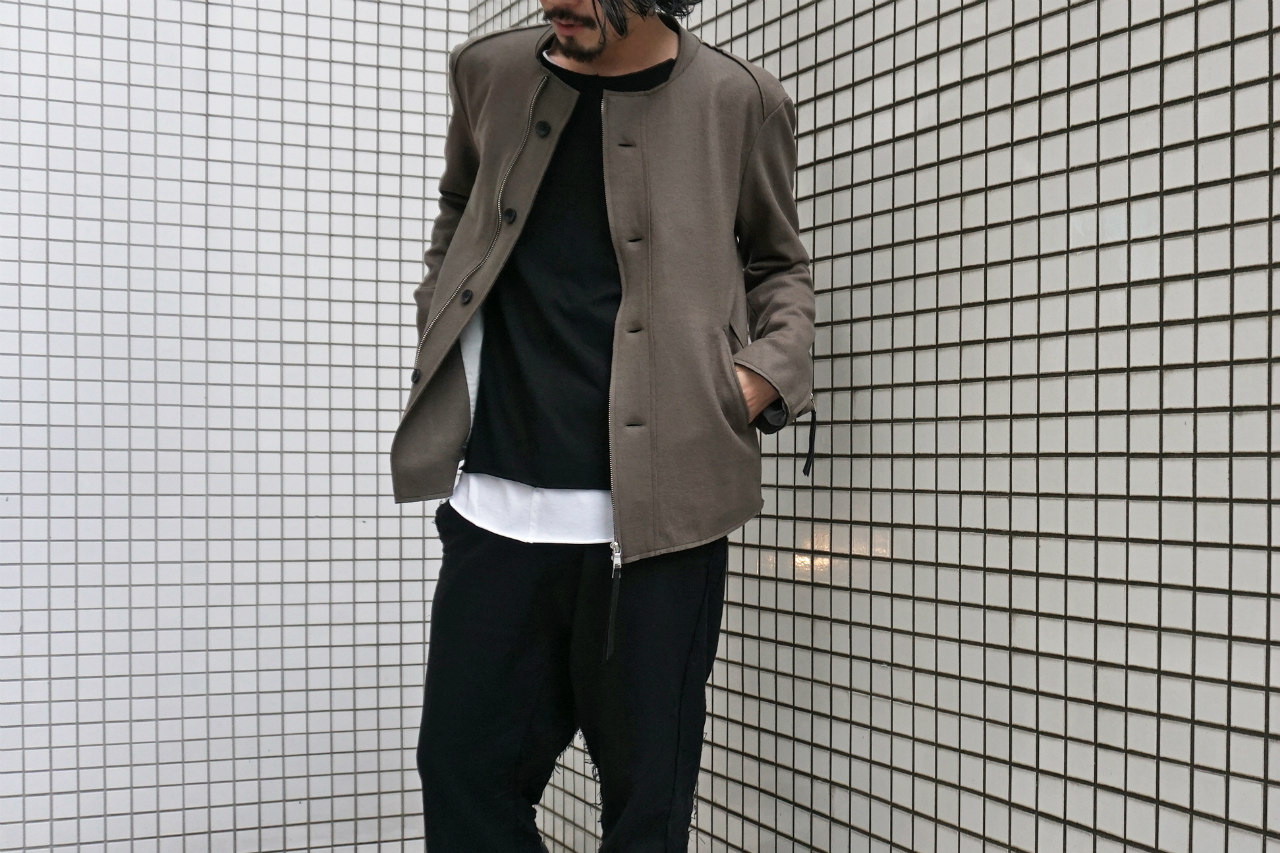 ノーカラーほどアンニュイさはなく、MA1などの男臭さの残る要素。