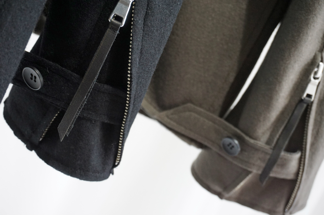 最たる特徴は、ボタンがもつクラシカルさ、ファスナーのもつ無機質さ、