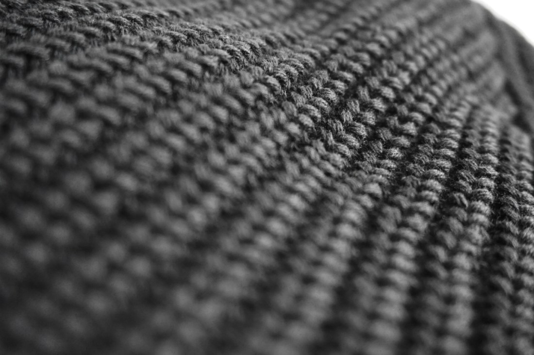 で、その厚みを実現させたのはこの糸の太さの選択と編み地。