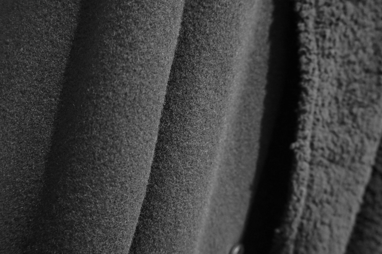 カシミアの様な大変柔らかいタッチ。メルトン特有のごわつきは軽減され、キメ細かい表情は程よいツヤ感を持ち合わせています。