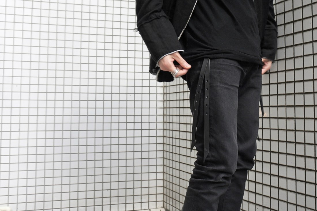 例えばYデニムなどを始めとするうちのボトムは既にベルトループから長い紐が2つ垂れていますが、その雰囲気をベルトに反映するようにしました。