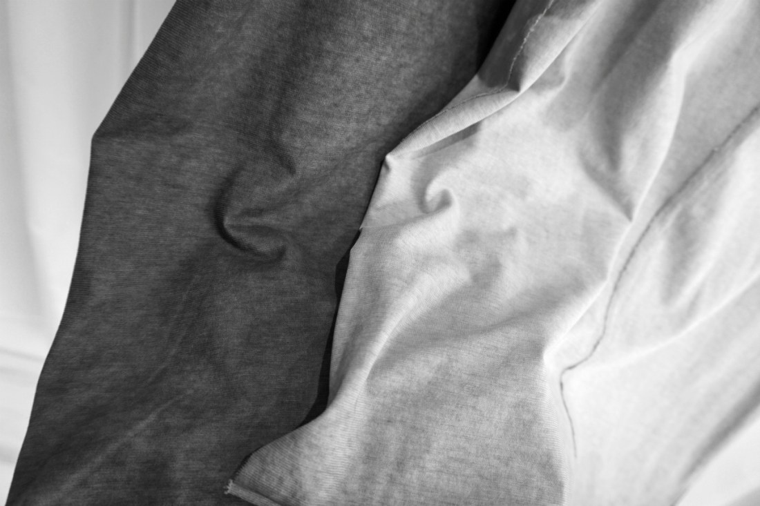 ダークグレーは縫い目の染まっていない部分が際立ちます。(こちらも量産時は、写真にように全く一緒になるとは限らず、縫い目部分の染まり具合は微妙な差が生まれる可能性がございます。)