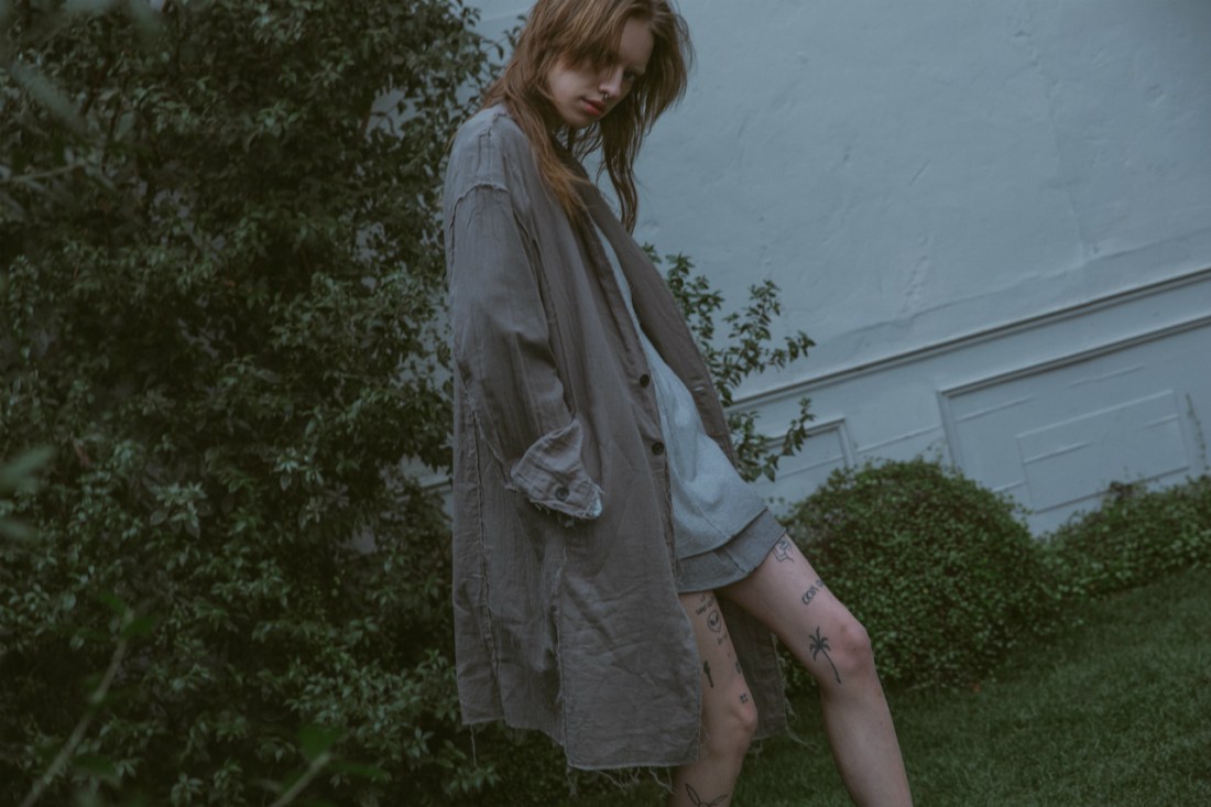 縫製後に洗いをかけ、くたくたにする事でグランジテイストを色濃く仕上げました。