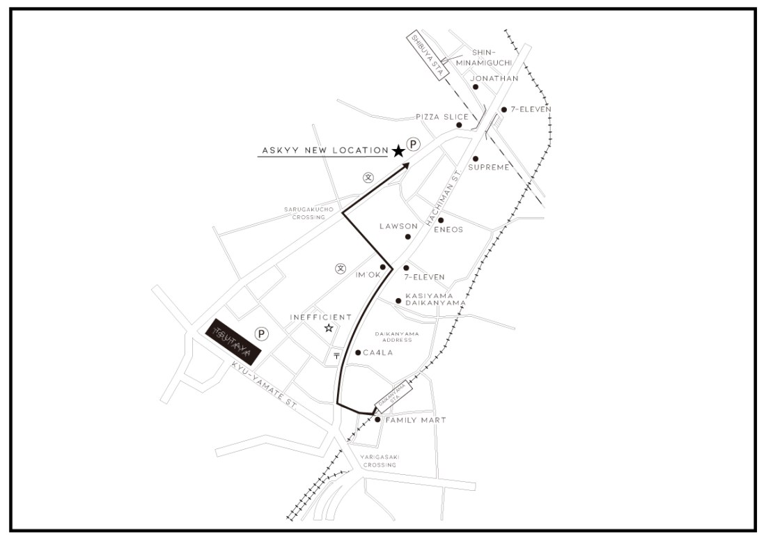 地図には前店舗(現INEFFICIENT)の場所も記してあるのでそちらを参考にお越しくださいませ。