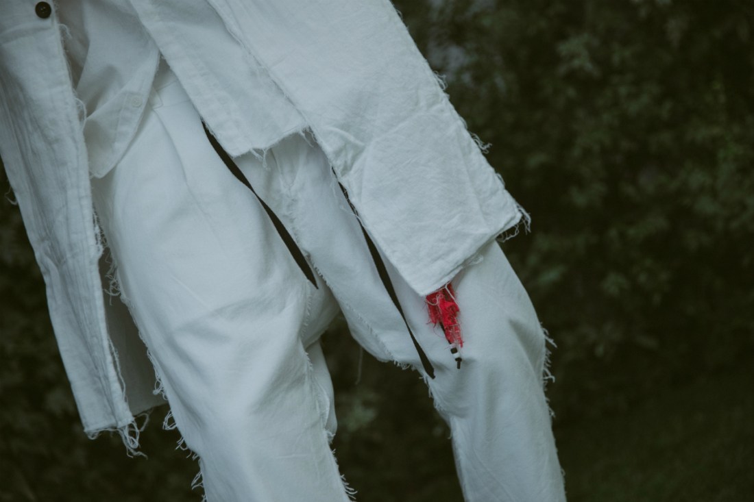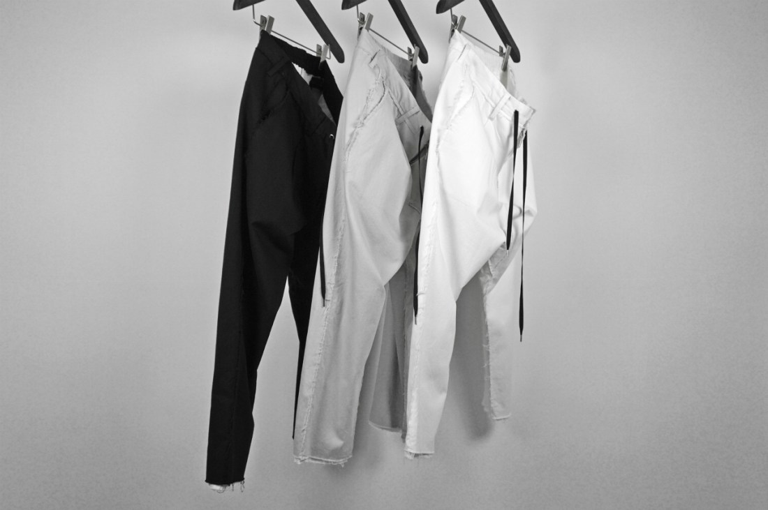 そうして作品を企画していく中、自然とペンを持ち、思いのままに走らせ、紙の上で形になっていたものが今回の「クロップドパンツ」でした。