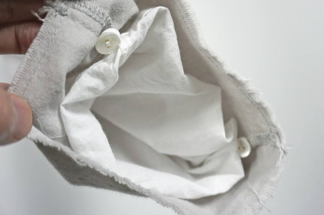 レイヤードさせている裏地は薄い”シャツ生地”を使用。