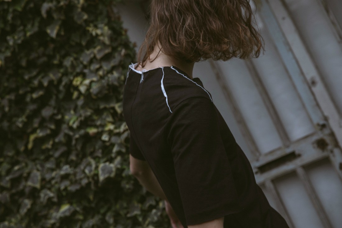身体を立体的に捉え、一般的な黒Tと差がつく部分。
