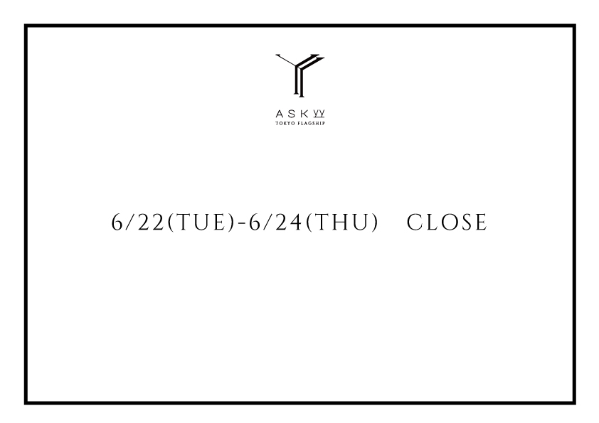 6/22(火)、6/23(水)、6/24(木)の3日間は展示会開催のため店舗をクローズとさせて頂きます。