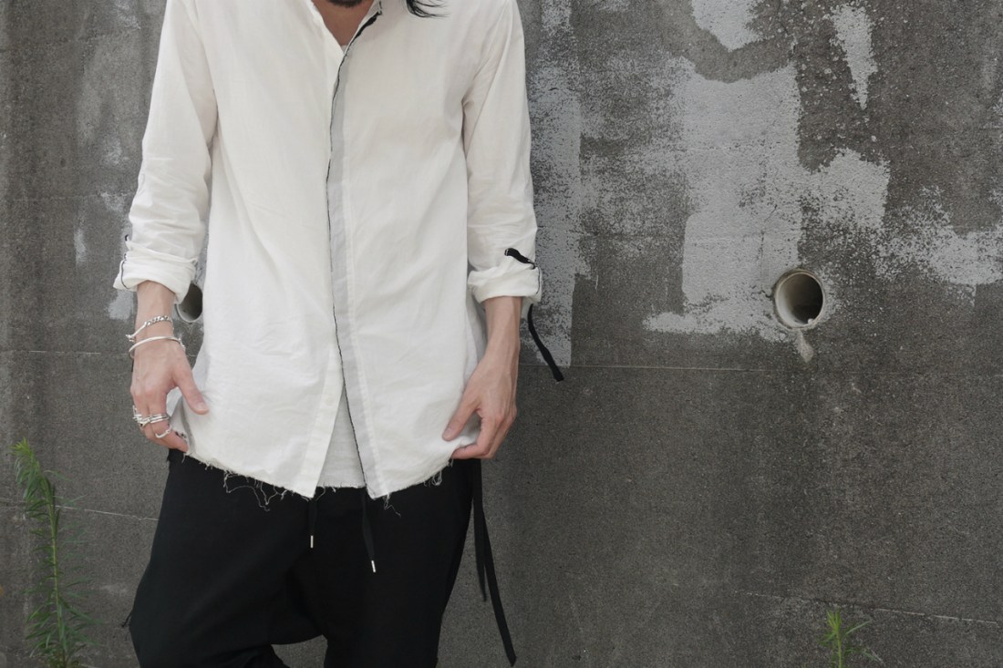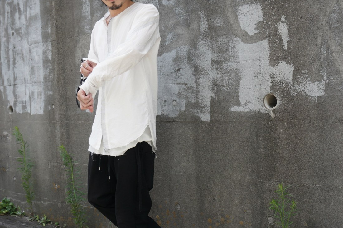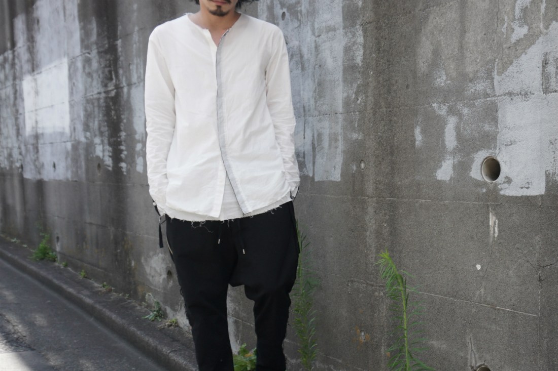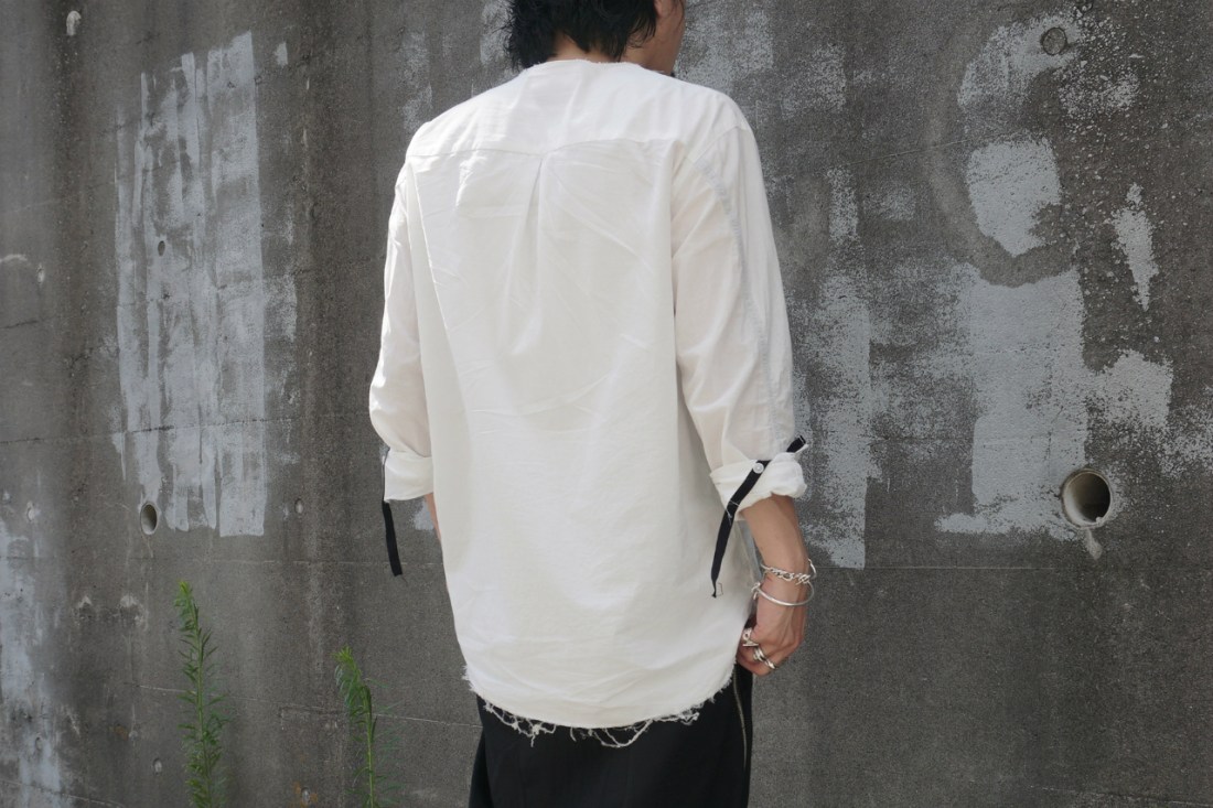 ASKYYが創るシャツの9割がノーカラー、いわゆるバンドカラーの襟なし。