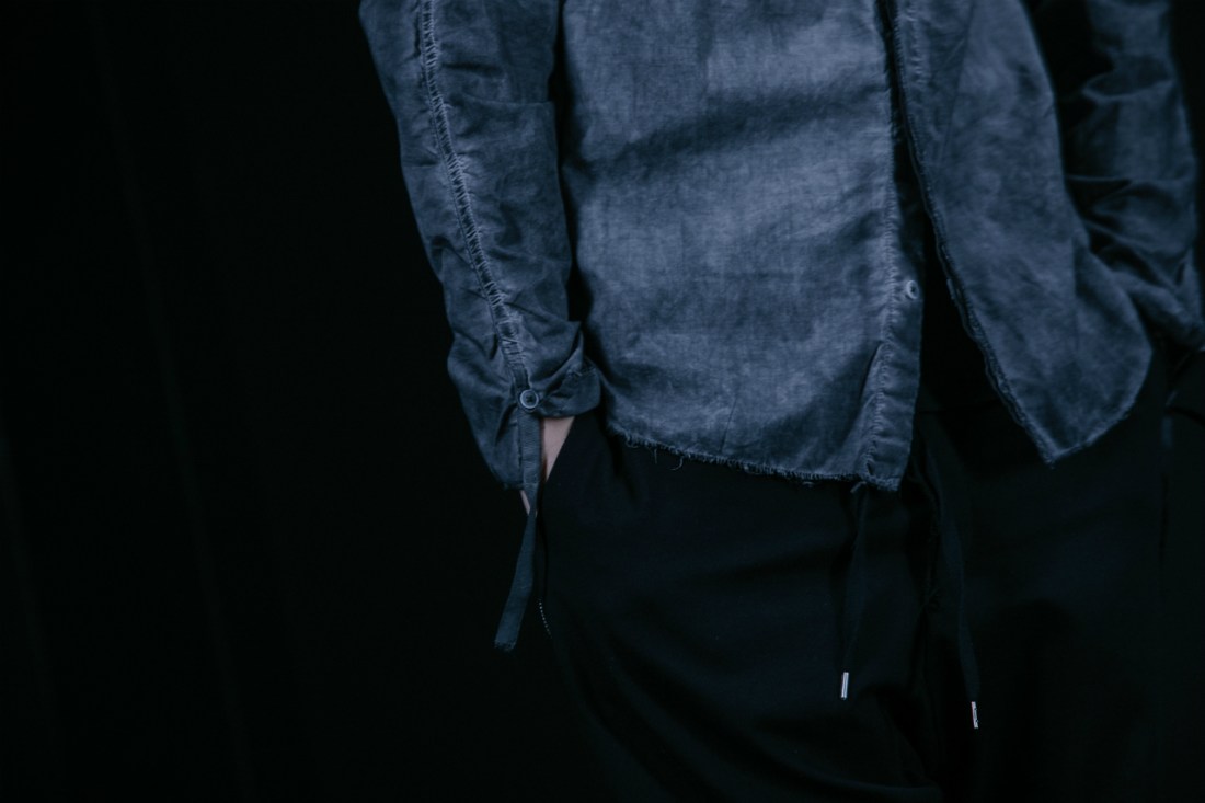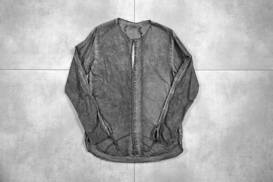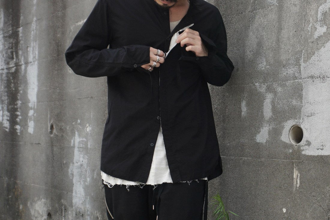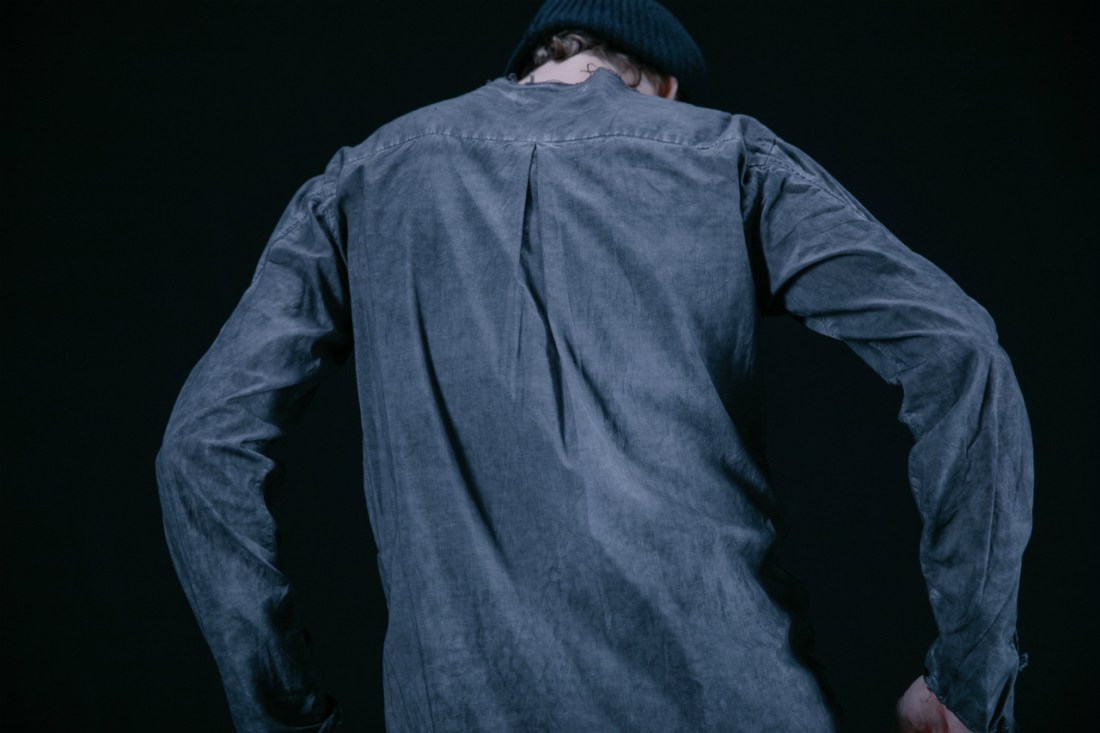 ASKYYが創るシャツの9割がノーカラー、いわゆるバンドカラーの襟なし。