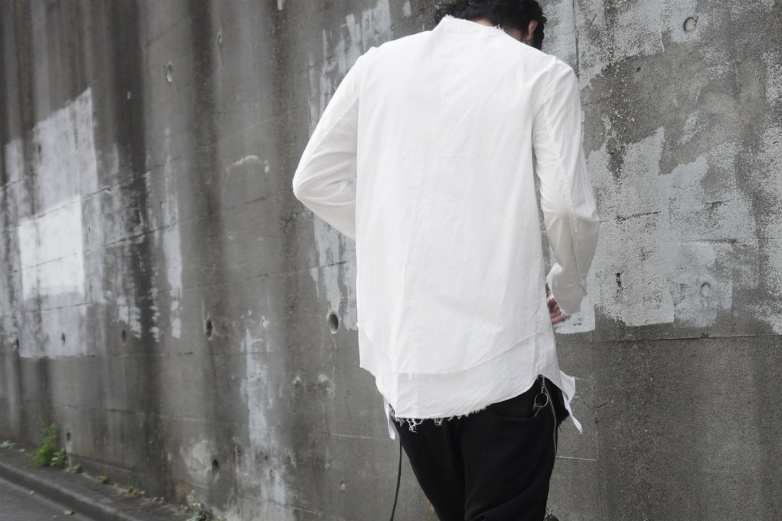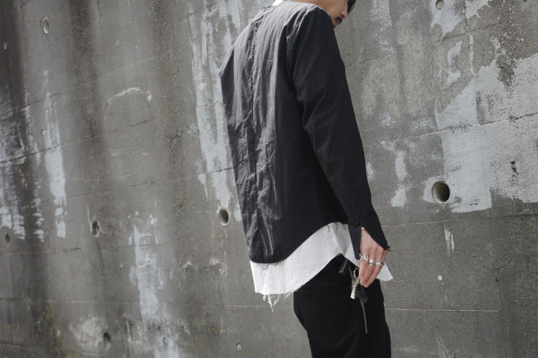 BLKWHTのコントラストってみなさまレイヤードカットソーで馴染みがあるし慣れて頂いていると思いますが、そのシャツ版と捉えて頂けるとすんなりでしょかね。