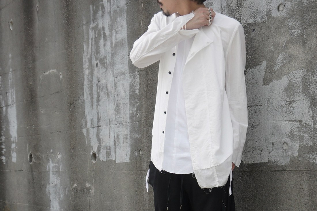 白シャツは何枚あってもいいものかと思いますが、こういったデザイン性が高いものこそ1枚クローゼットにあればお役立て頂けるかと思います。今後のセットアップ系を考えるとなおさら。
