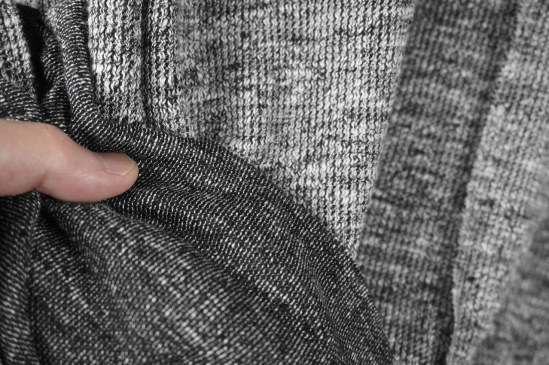 ミックス調で杢がかった生地は、ベースが黒と白によるもの。
