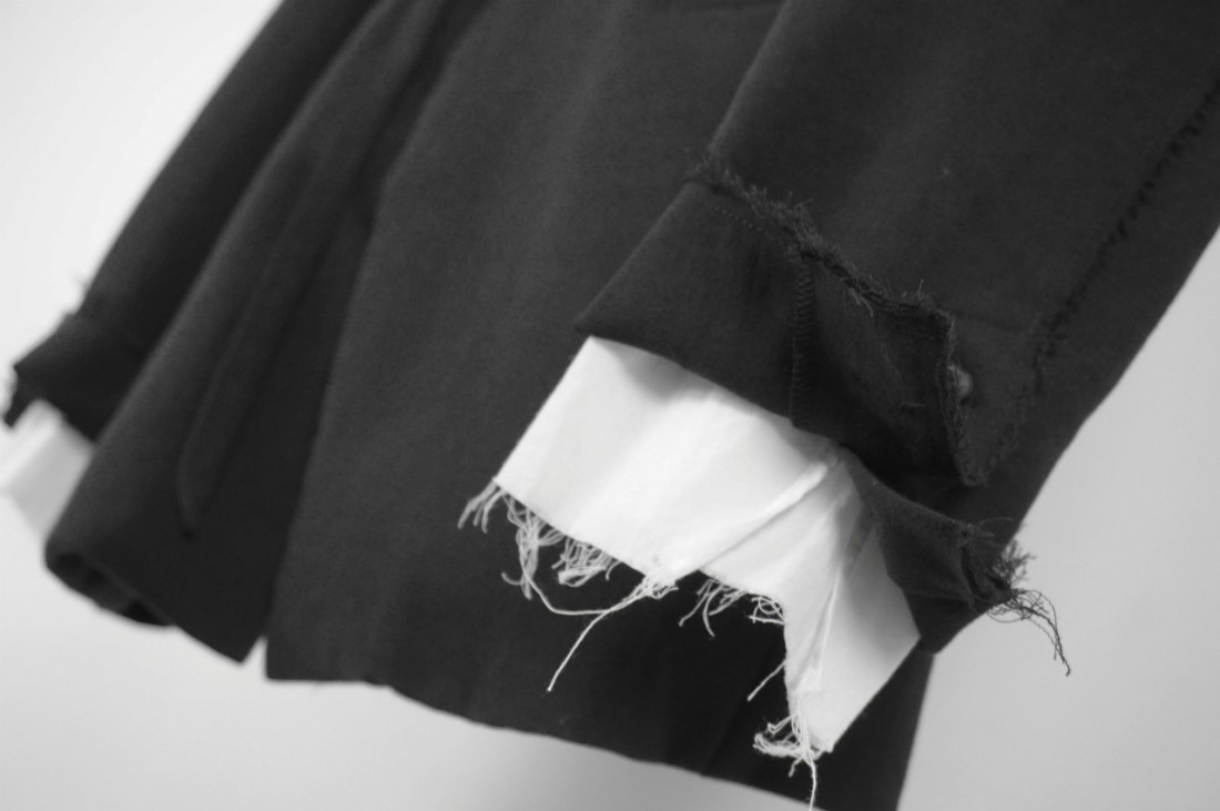 いつも通り縫い目はほつれの仕様ですが、全ての箇所にした場合グランジ感が強すぎて仕事向きではなくなってくるので、