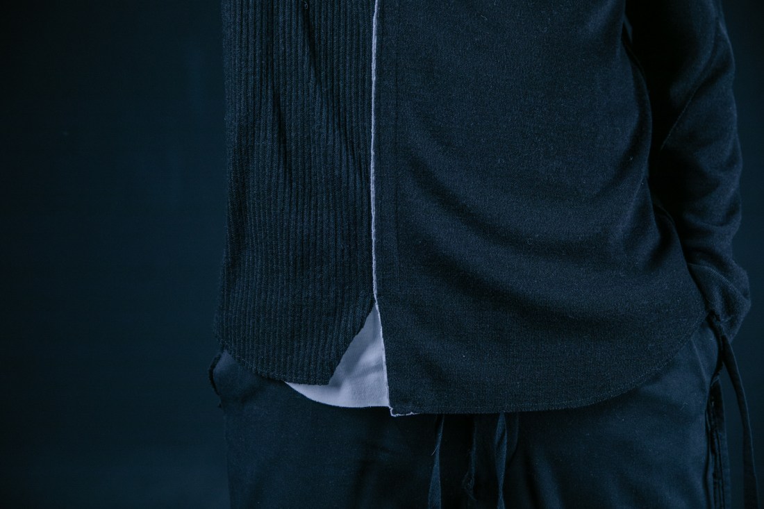 裾部分はインナーとのレイヤードを計算し若干斜めにカッティングしてます。