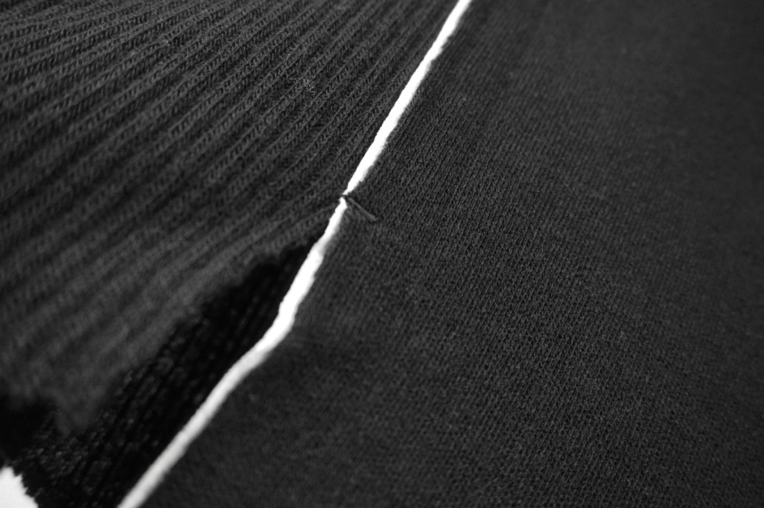 ボンディングパーカーのBLKをお持ちのお客様は、デザインがかぶる ということを懸念されるかもしれません。でもこの白線ギミックってもはやうちのロゴというか定番みたいな感じですし左右生地違いのドッキング要素も加わっているので別物だと思うす。