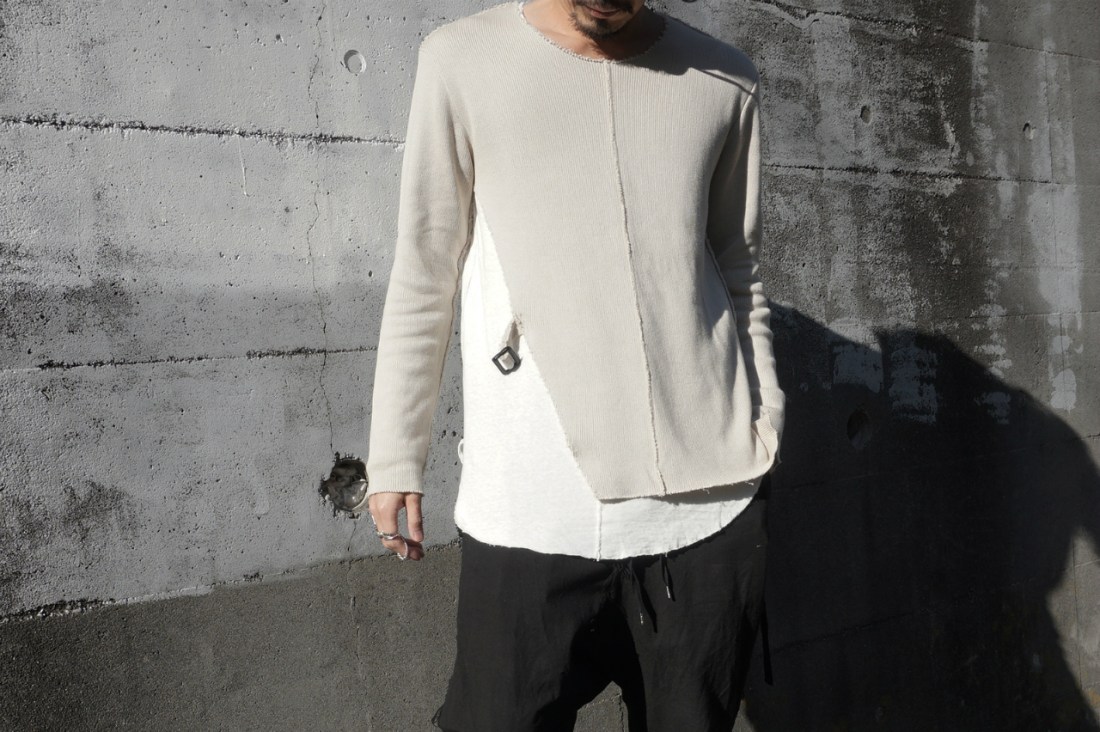以前のBONDAGE KNITはオーバーなドロップショルダーだったので、ジャストフィットお待ちだった方はお待たせいたしました。