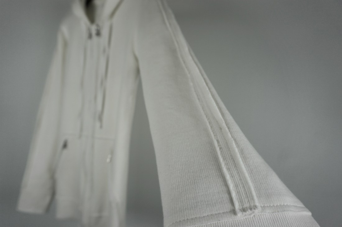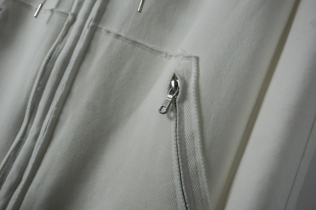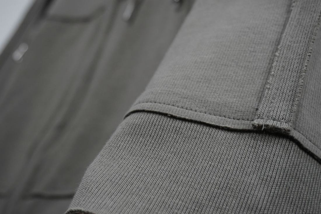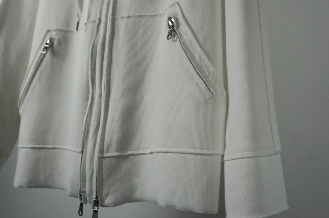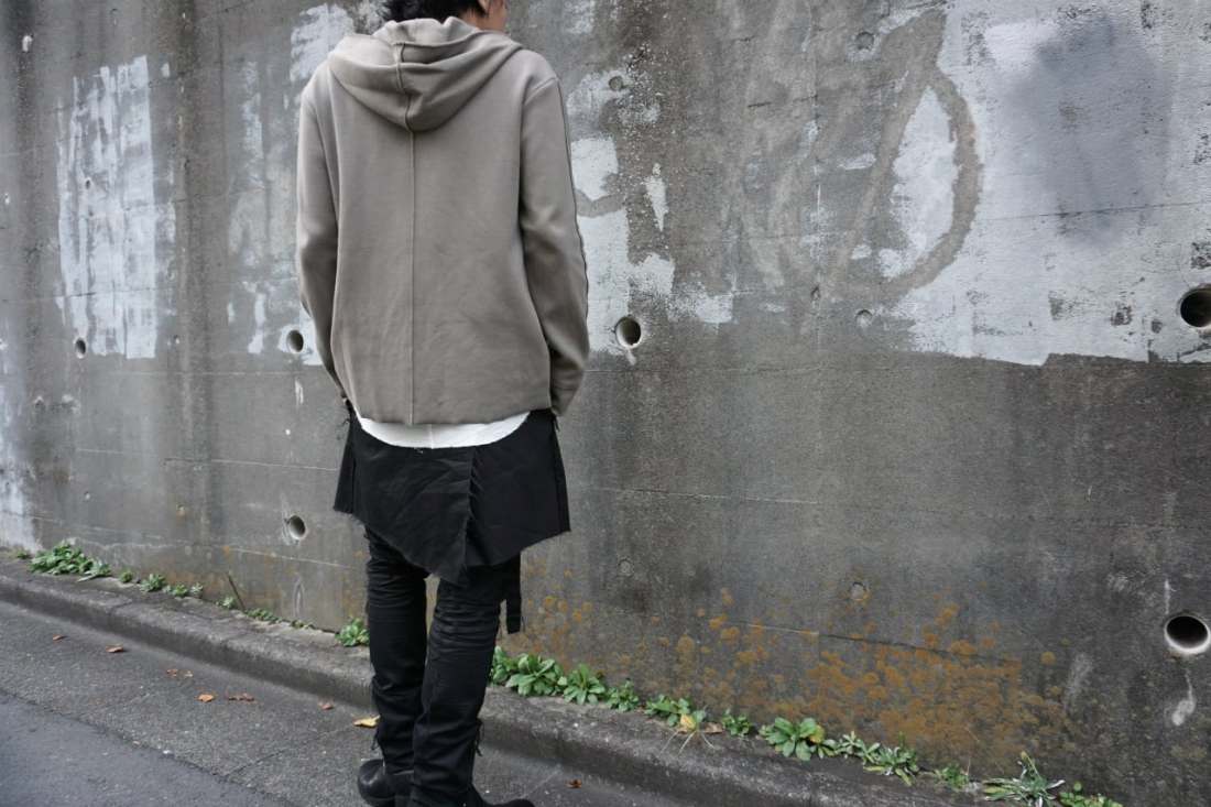 パーカーでありがちなリブなどは削ぎ落とし、裁ち切りで無駄のないコンパクトさ。