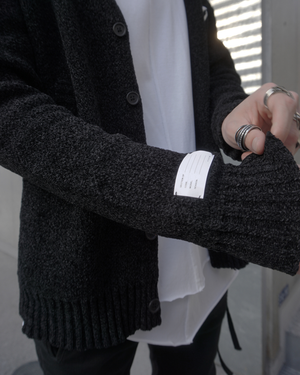 袖口には22ssより採用しているプロダクトタグ。