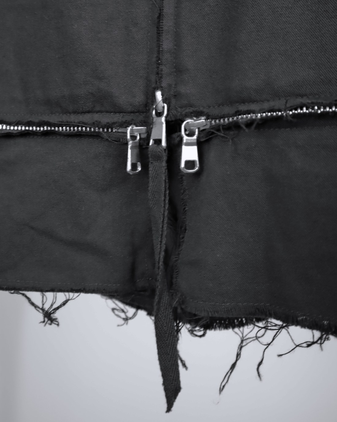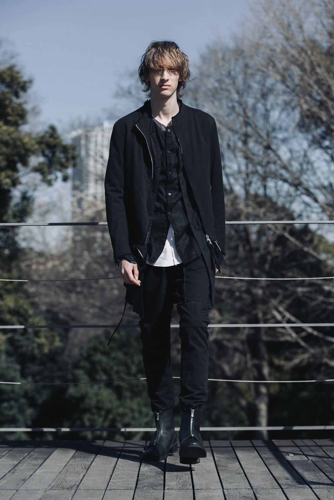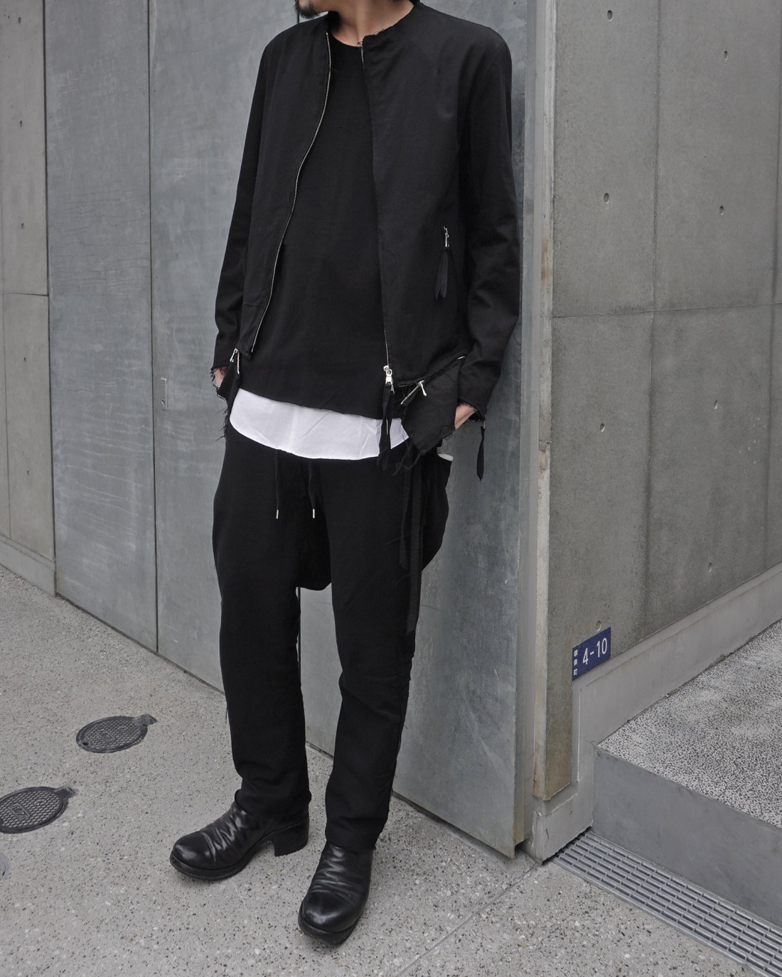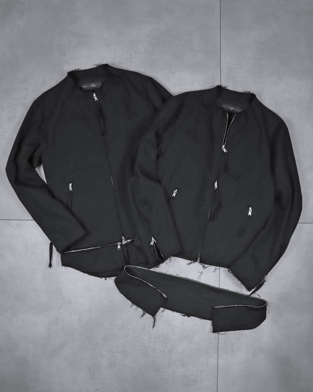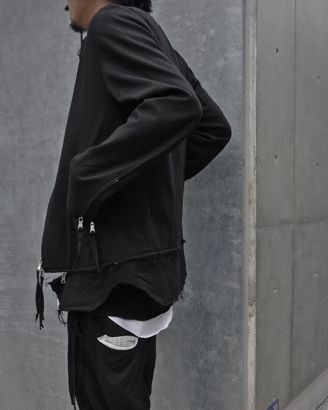 ジップをフロント側へ大胆に打ち出しつつ、開くことで構築的なスタイリングを可能にしたモデル。