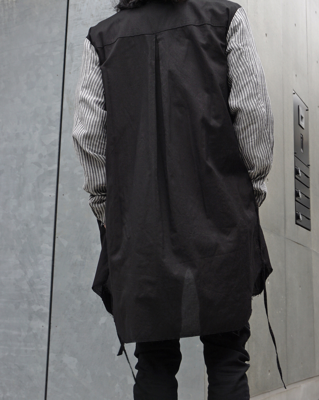 通常のエントランスシャツと違い、袖部分のストライプが表側に。