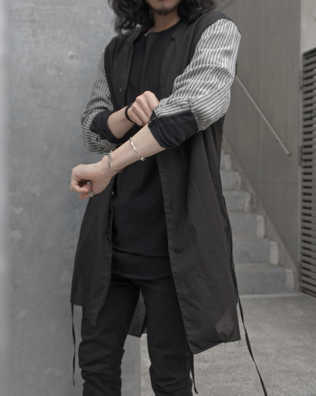 袖裏地が黒という特性を利用し、ラフにうでまくりをしてご着用ください。
