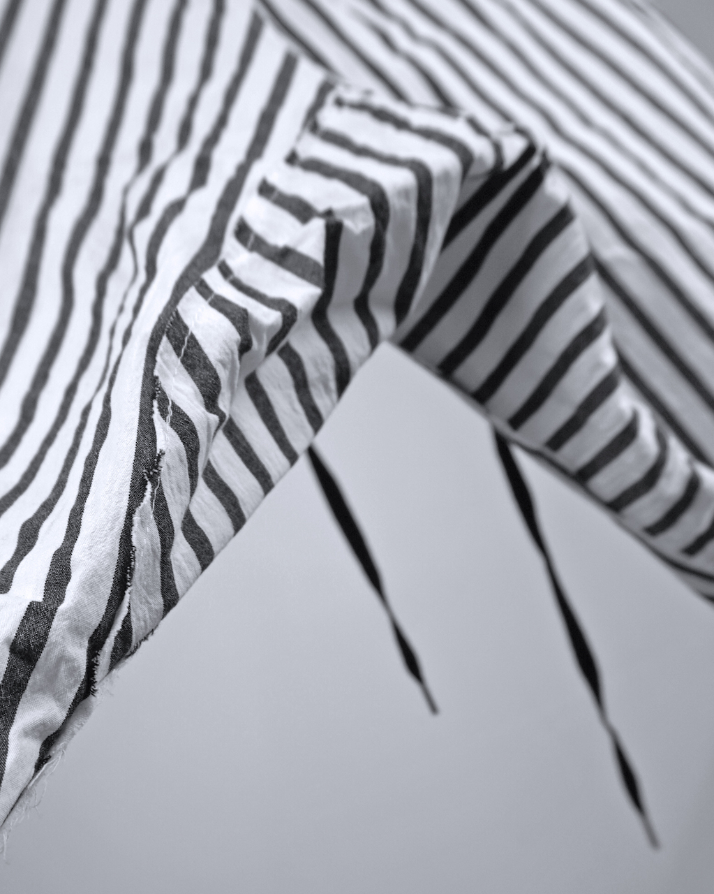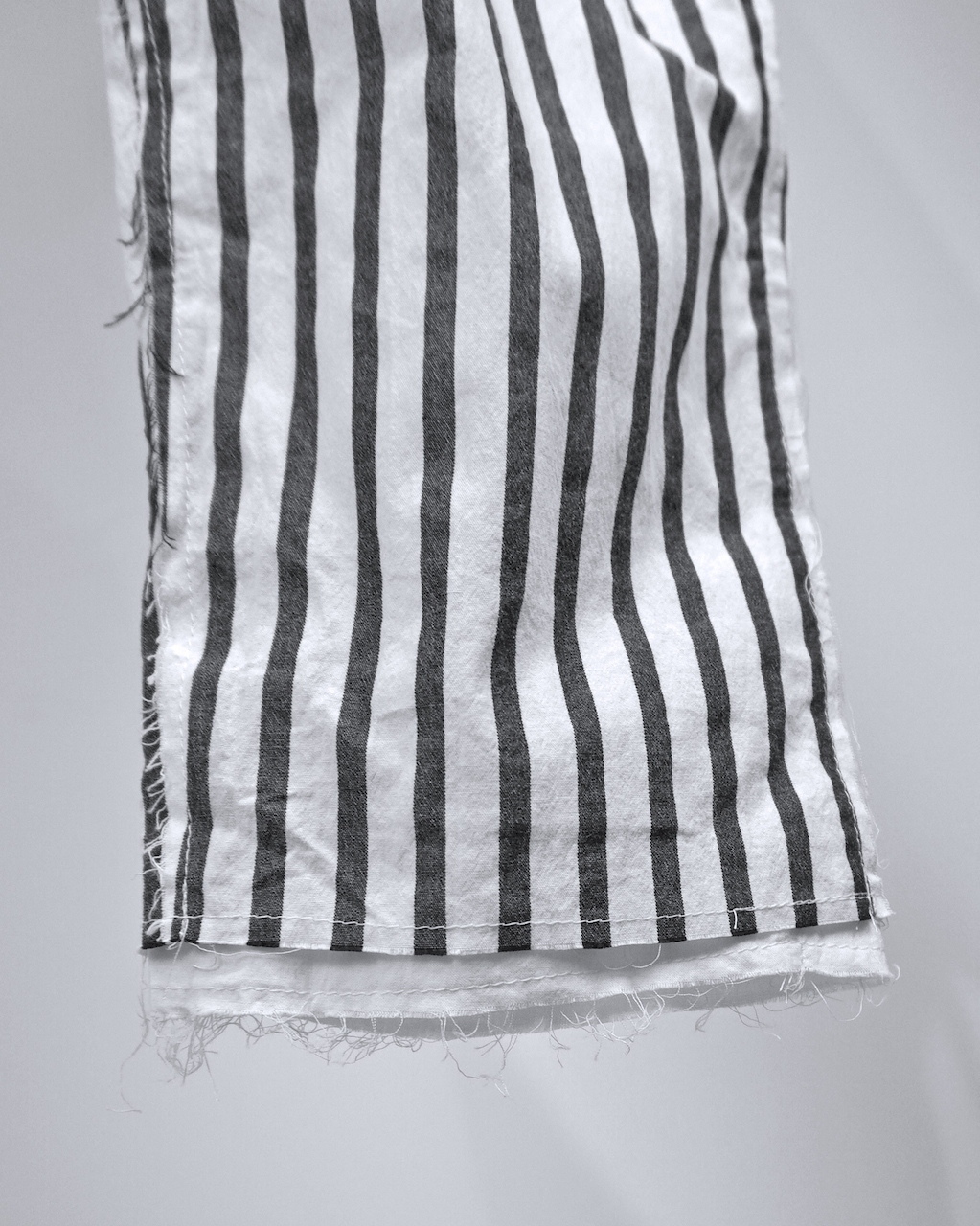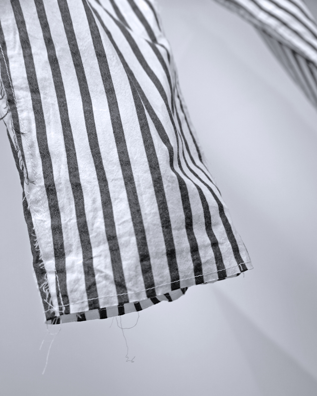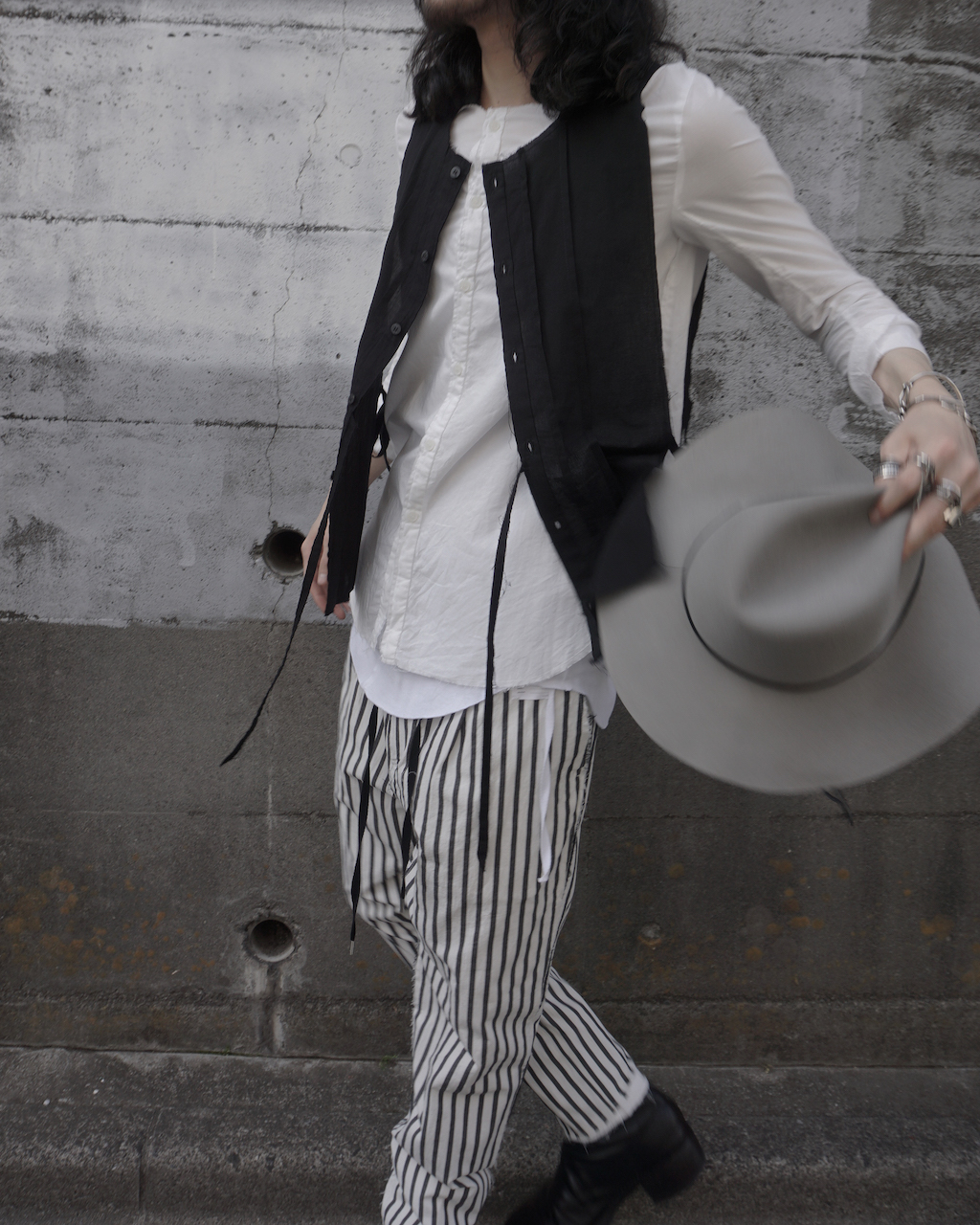この服もまた、考えうるストライプのドレッシーさや概念を除去し新たなご提案に挑戦しました。