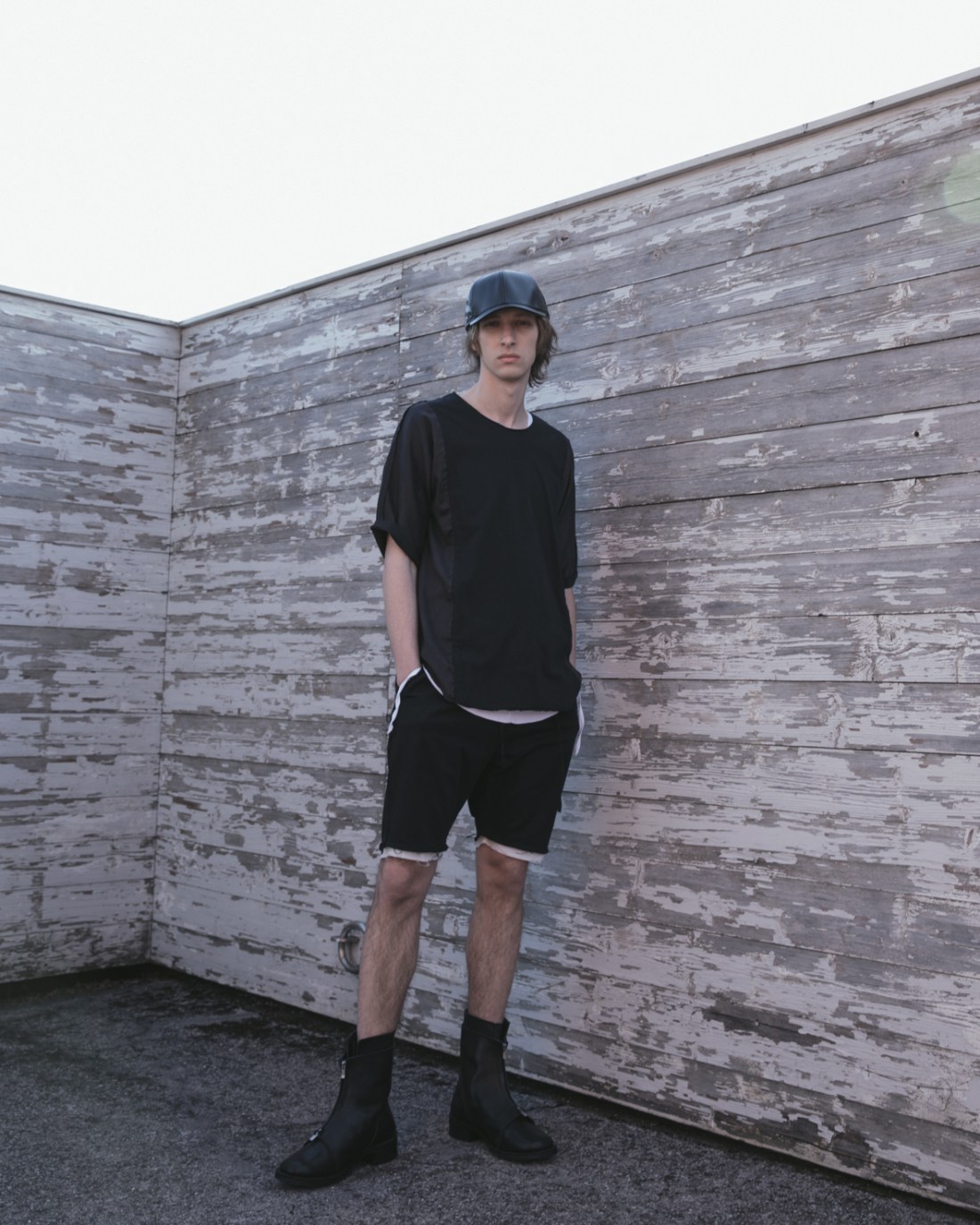 身頃は袖のフェイクレザーに合わせてカラッとした風合いの天竺素材に変更済み。