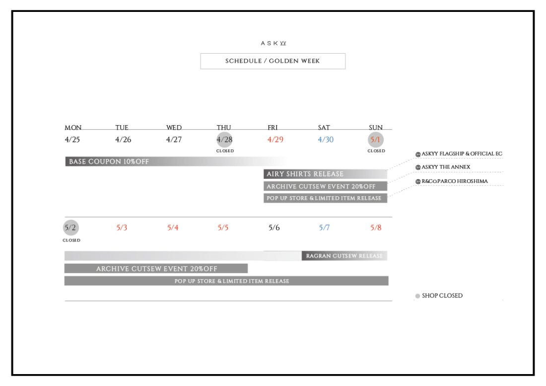 4/29- @R&Co.広島 PARCO店様 ▶︎ASKYYPOP UP SHOP&LIMITED ITEM RELEASE