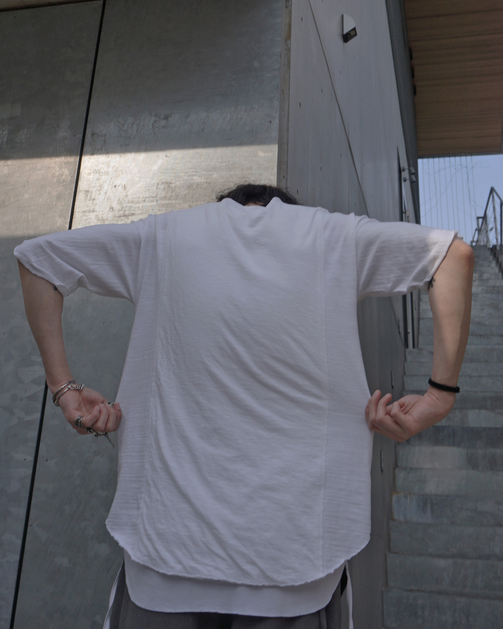 5年前に製作しましたレイヤードカットソーもその問題を解決する上での重要な作品ではありましたが、