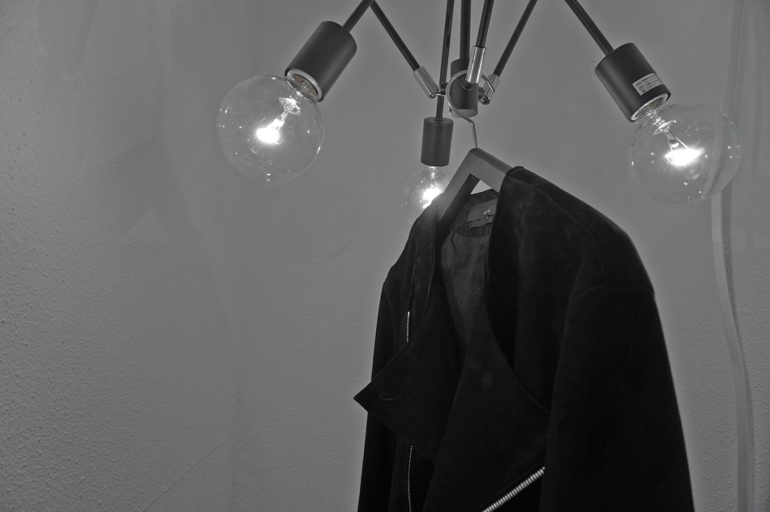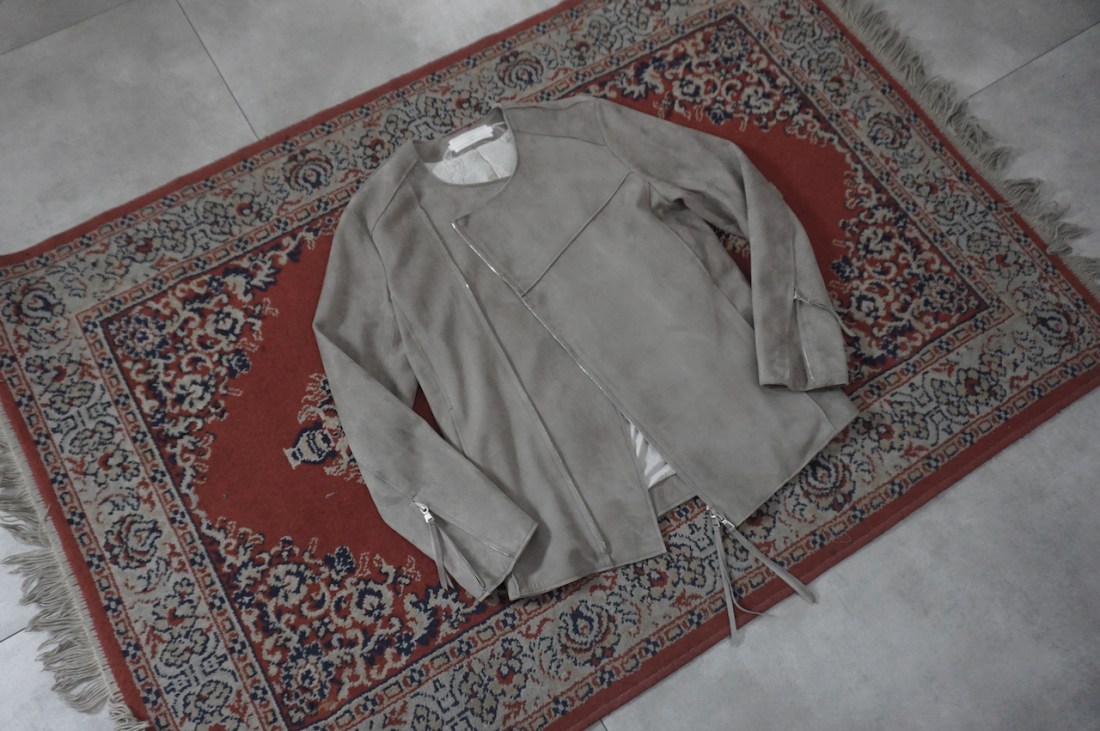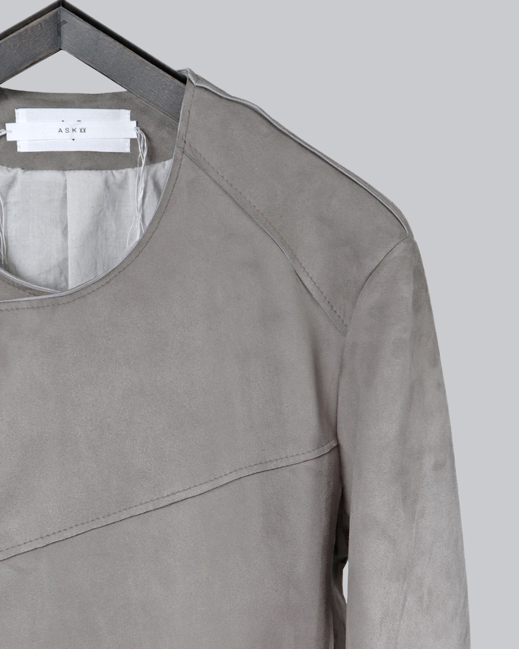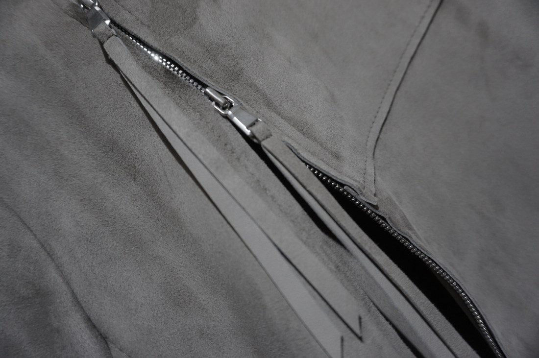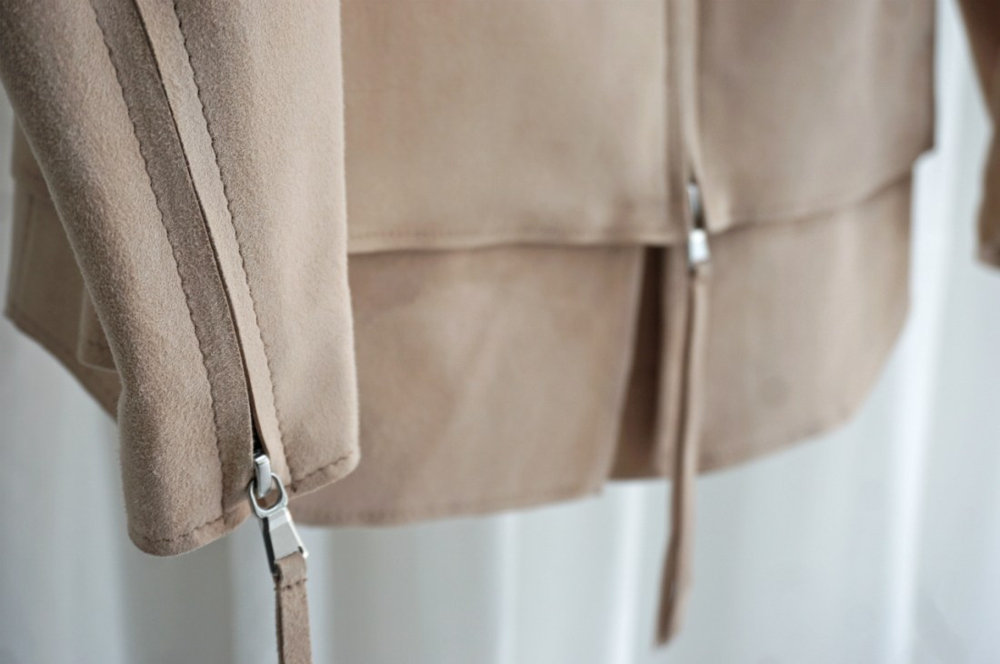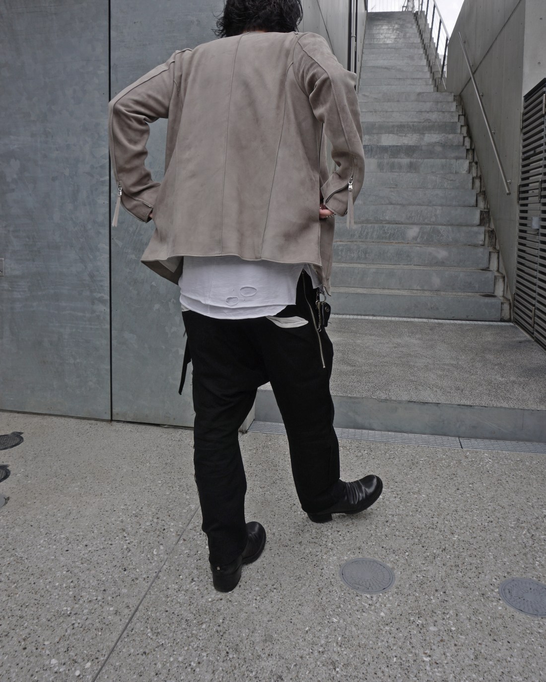 ASKYYといえばのノーカラーをダブルにも採用し、シングルライダースとの親和性を高めています。