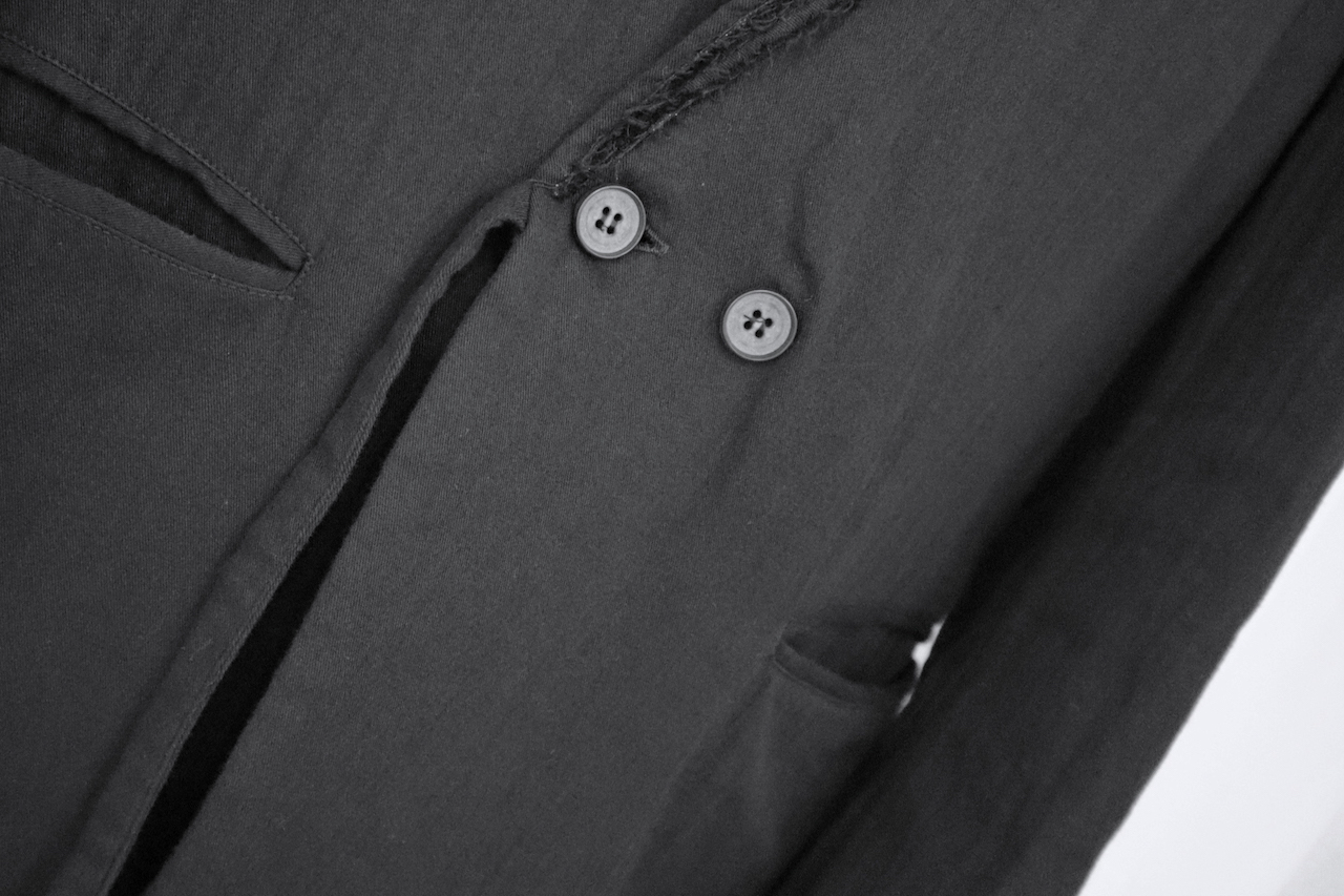 ノーカラージャケットに襟をドッキングさせたデザインは、テーラードジャケットという堅苦しい枠組みの制約を払拭し、分厚い壁を破壊。
