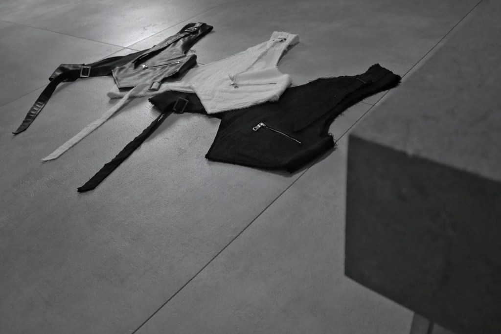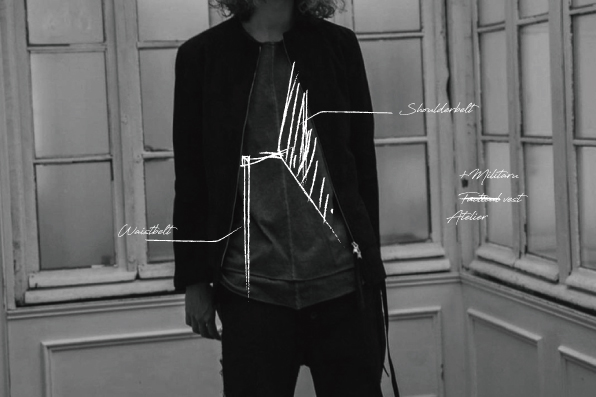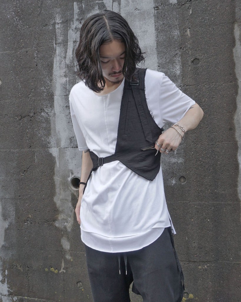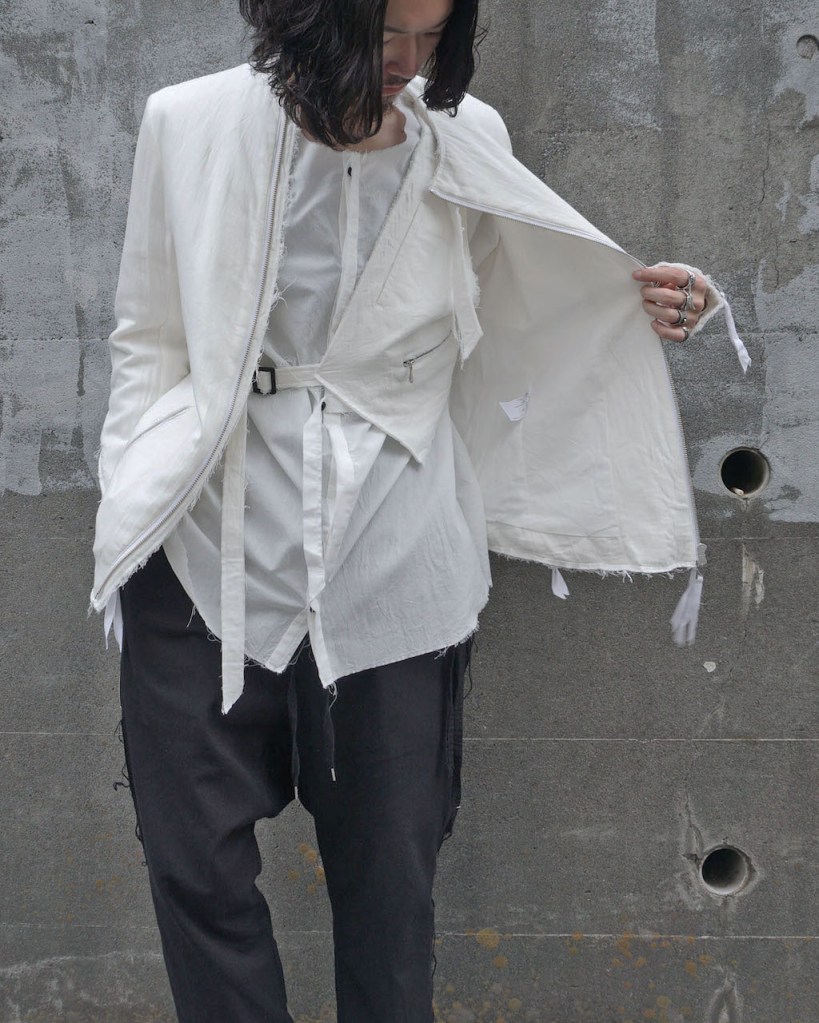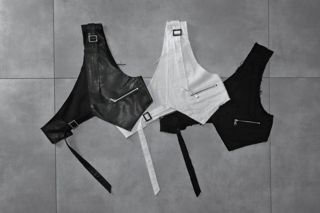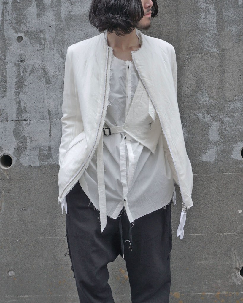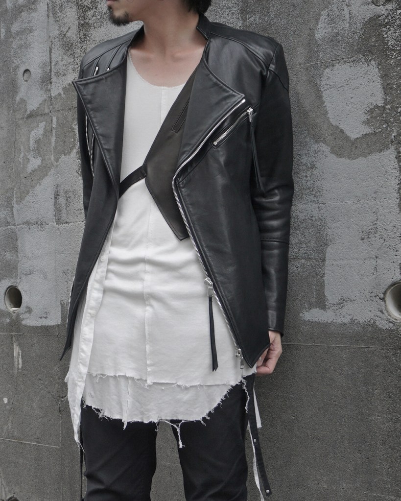例えばスーツ+ジレの合わせってあるじゃないですか?あのイメージでジャケット+ジレ、ライダース+ジレといった2ピースになる仕様。