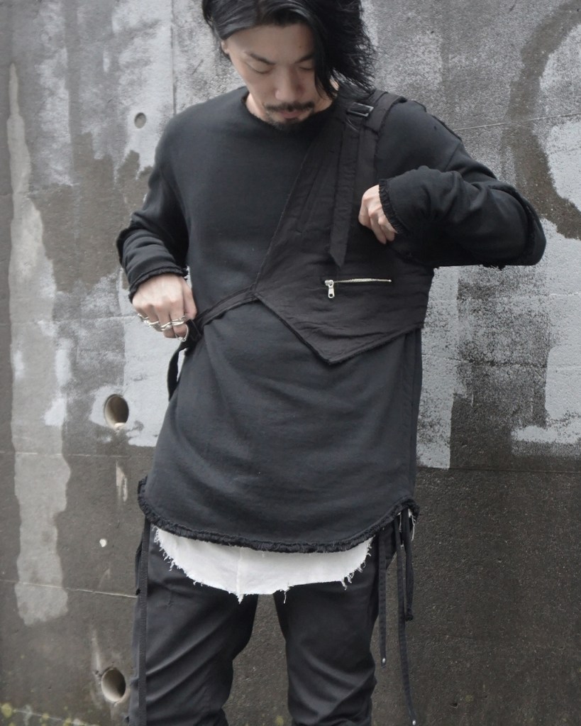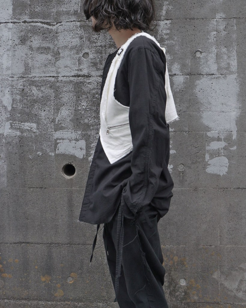 ASKYYの場合、今シーズンの一つのエッセンスである「武装」だったり、新たなレイヤードパーツ としてのご提案なので、いずれの場合でもアプローチや意図そのものが大きく違いますが、カテゴリとしては同ジャンルのアイテムになるのかと思います。