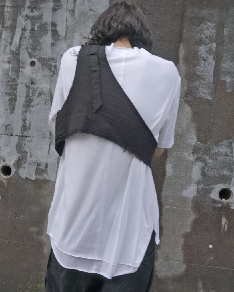 布だけで構成された一般的なアシンメトリーベストという領域からの脱却。