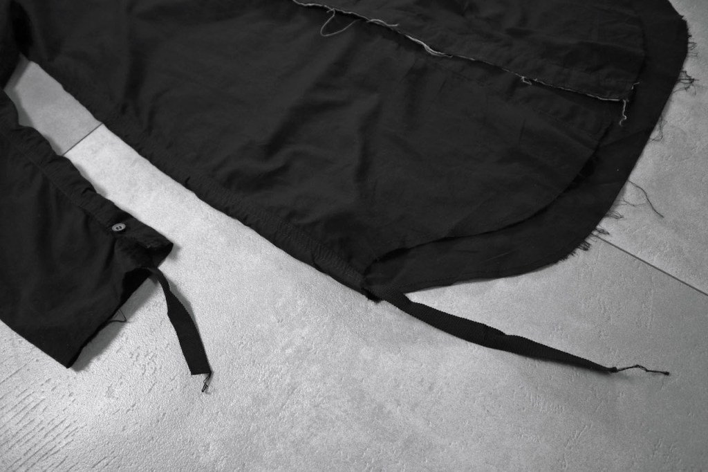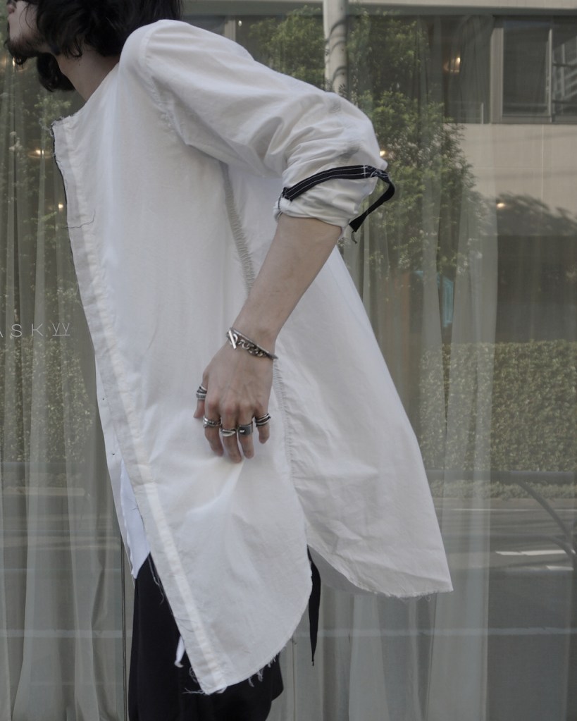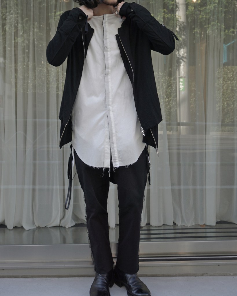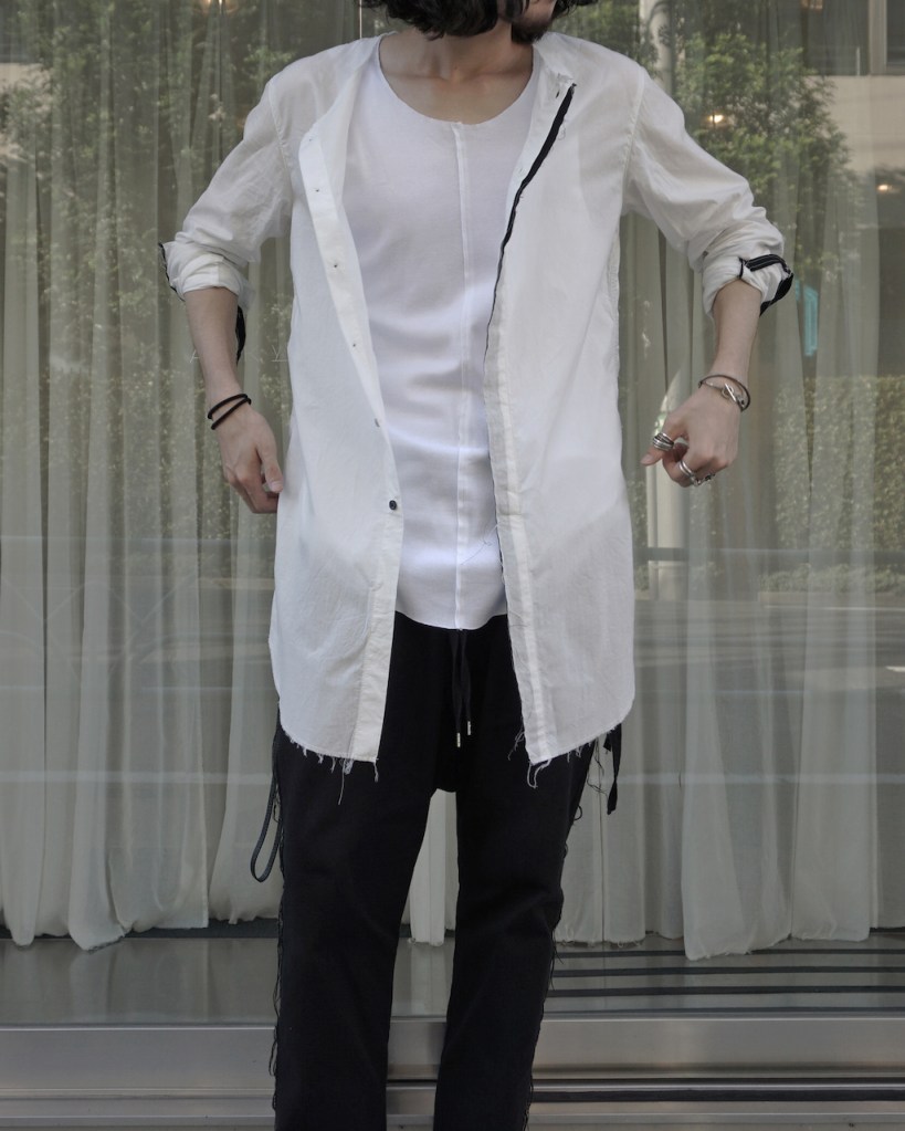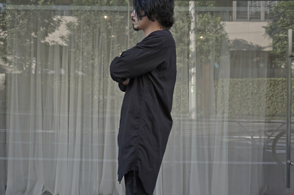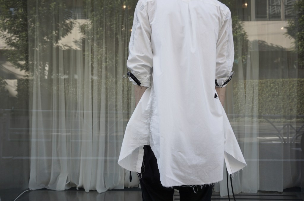 具体的に申し上げますと、もう少しシャツっぽい曲線というか、えぐってる感じのラウンドカーブです。今までリリースしたシャツですとREMOVABLE HOODIEやCORD SHIRTSが挙げられます。最近のロングシャツは基本的にこの形で統一してます。