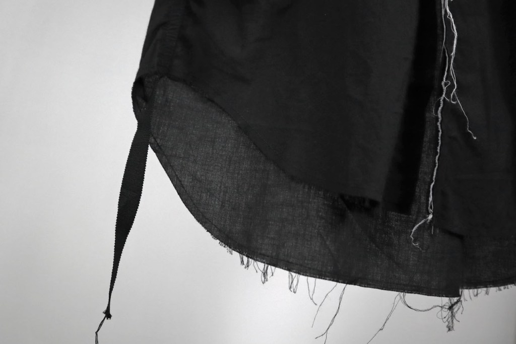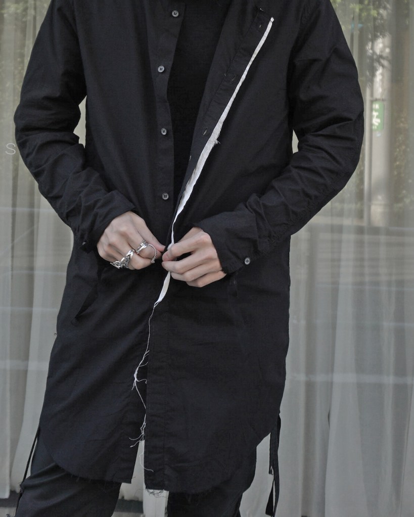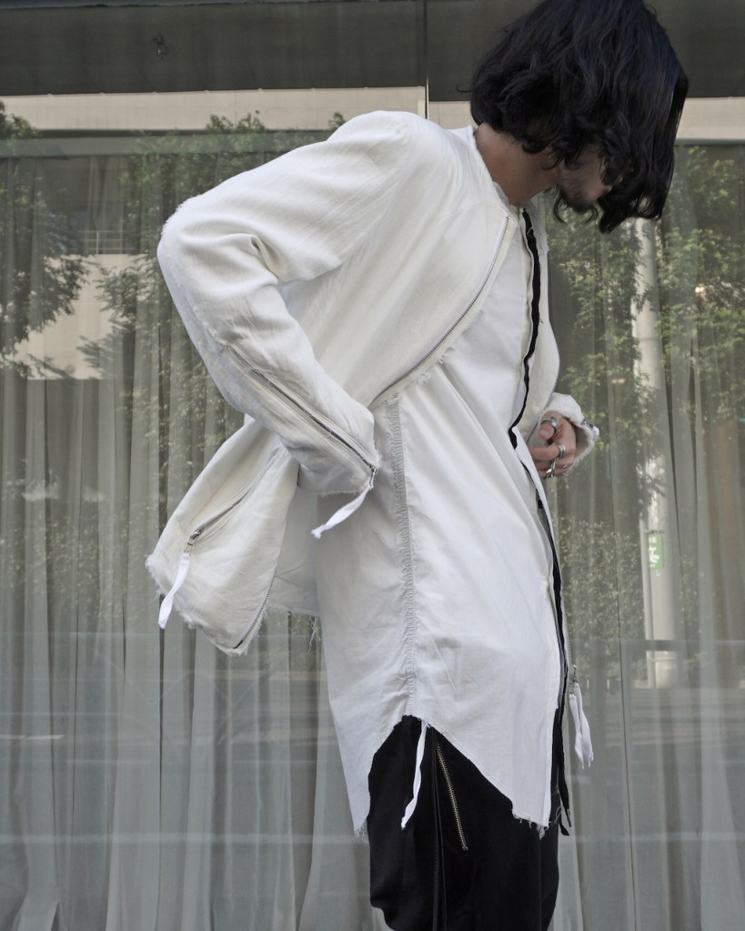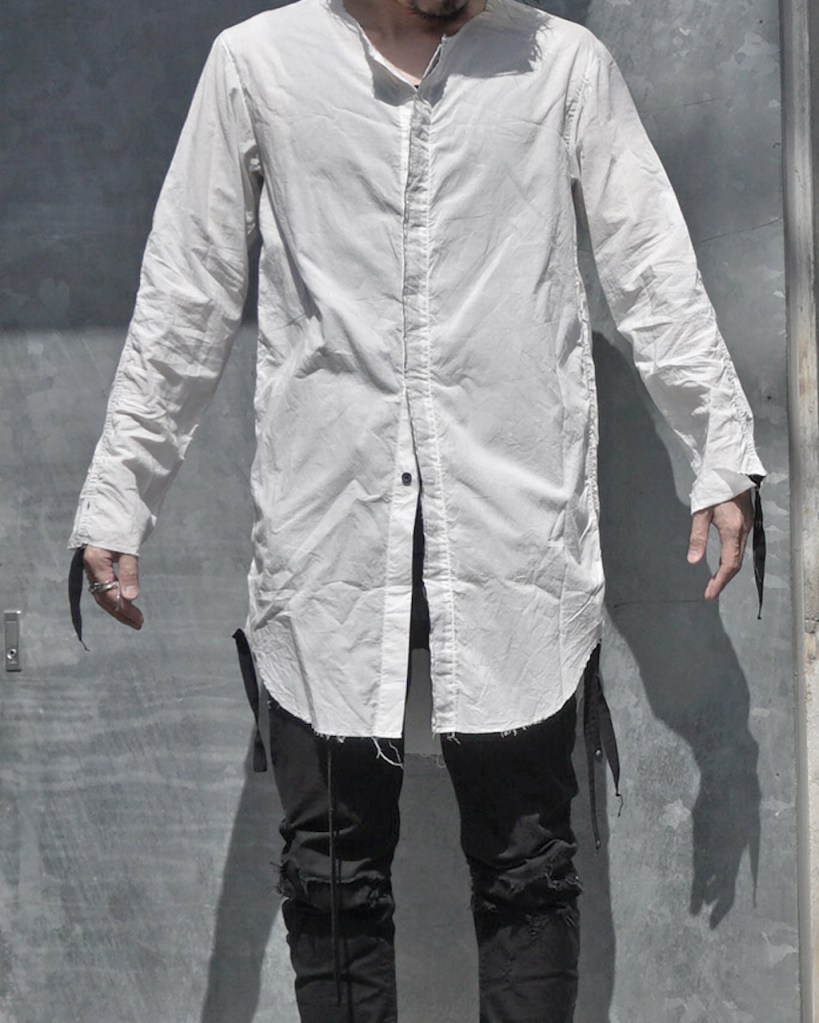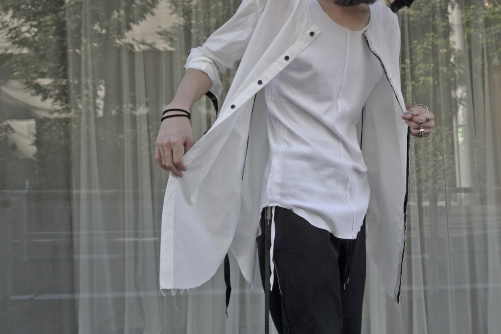 具体的に申し上げますと、もう少しシャツっぽい曲線というか、えぐってる感じのラウンドカーブです。今までリリースしたシャツですとREMOVABLE HOODIEやCORD SHIRTSが挙げられます。最近のロングシャツは基本的にこの形で統一してます。