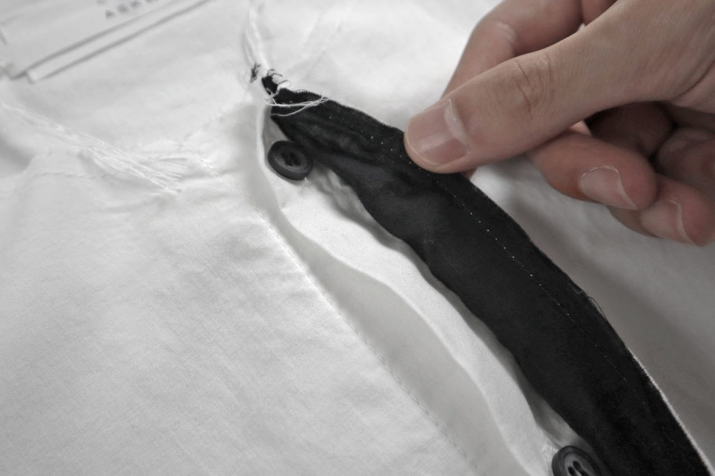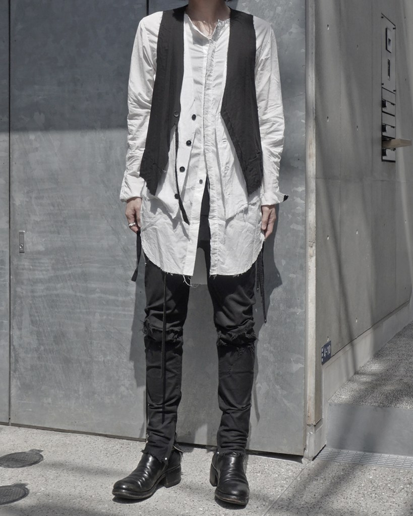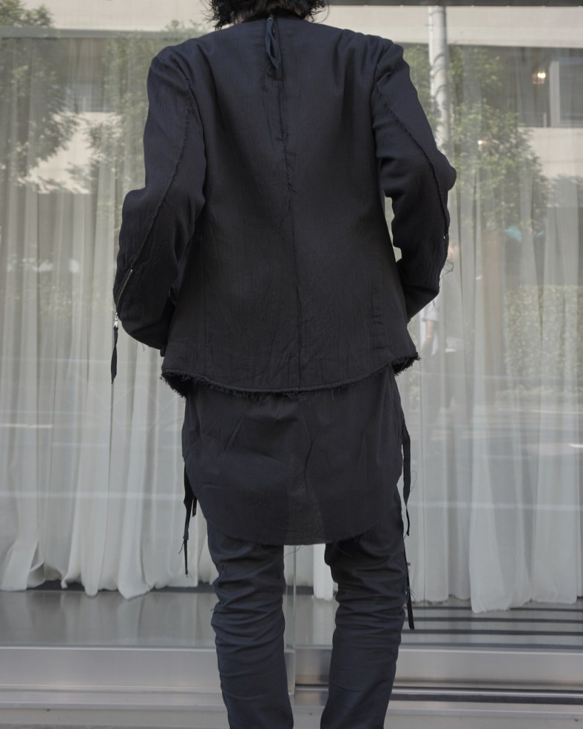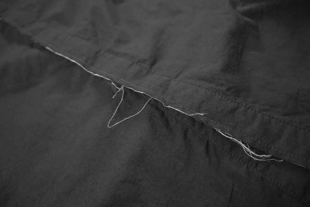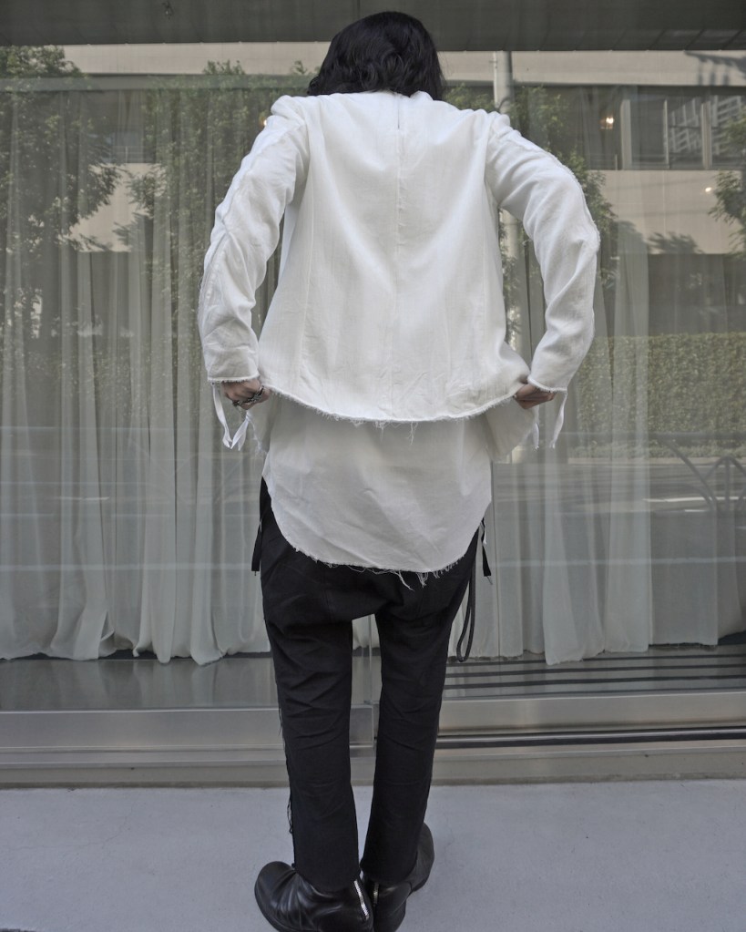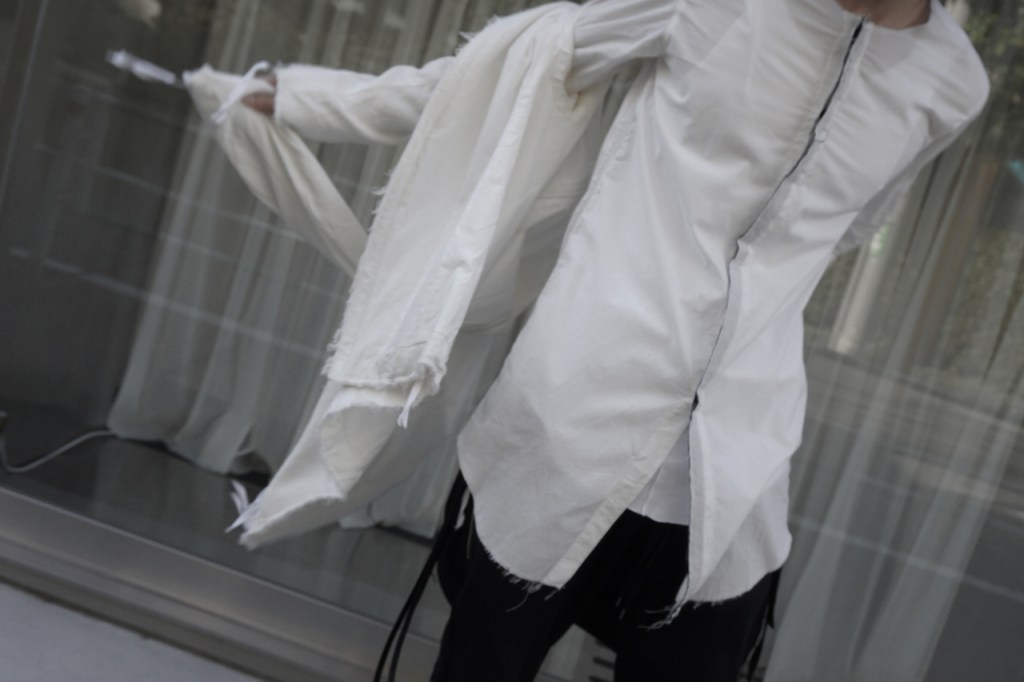 具体的に申し上げますと、もう少しシャツっぽい曲線というか、えぐってる感じのラウンドカーブです。今までリリースしたシャツですとREMOVABLE HOODIEやCORD SHIRTSが挙げられます。最近のロングシャツは基本的にこの形で統一してます。