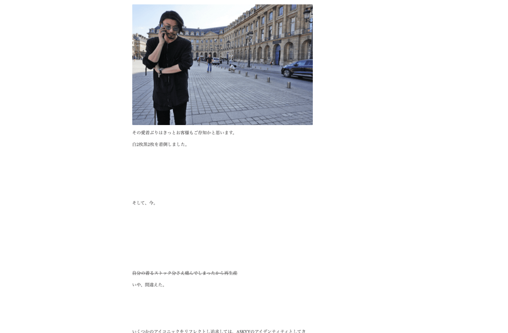 2018年1月、パリのホテルでキメセルフィーと共に初めて露出した「RIBBON SHIRTS」