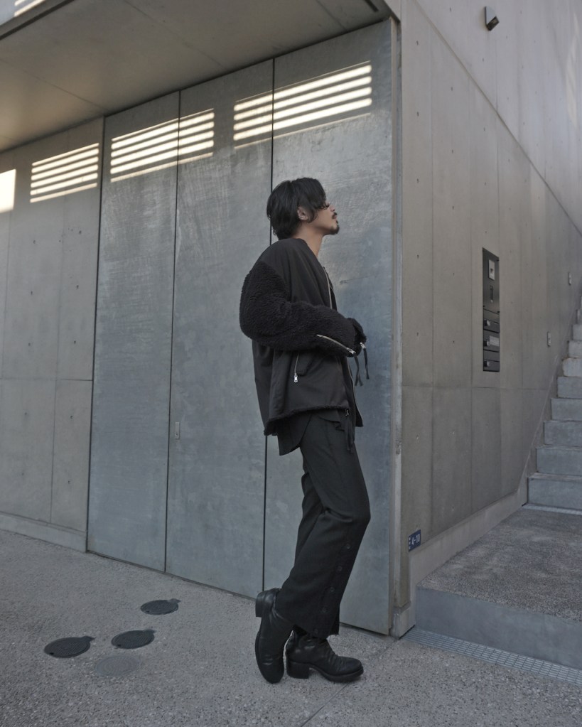 LOOKではATELIER PANTSと合わせていました。完全にミリタリー路線に全振りさせていますが、実際小綺麗なスタイリングで外していただくのもおすすめです。