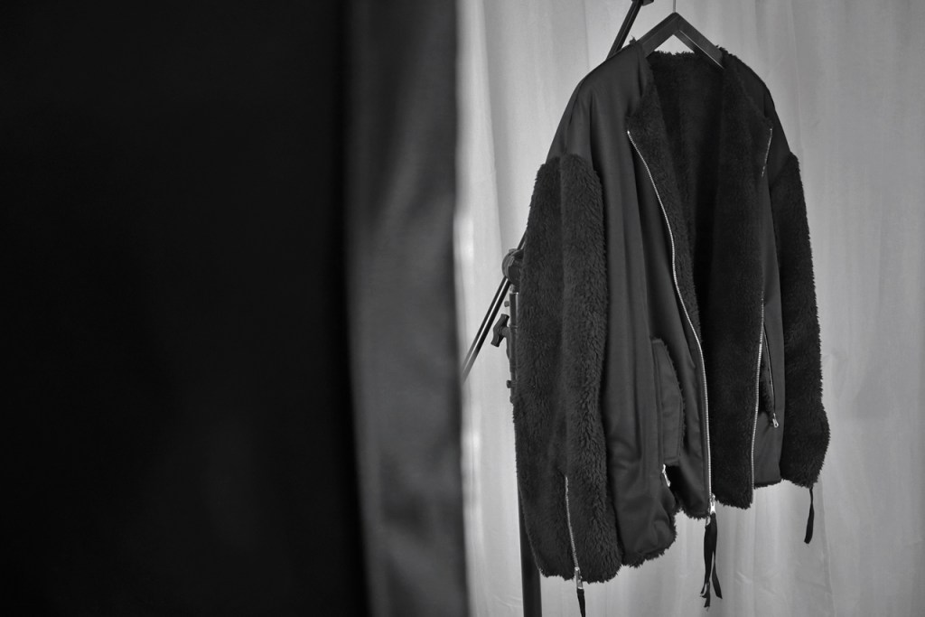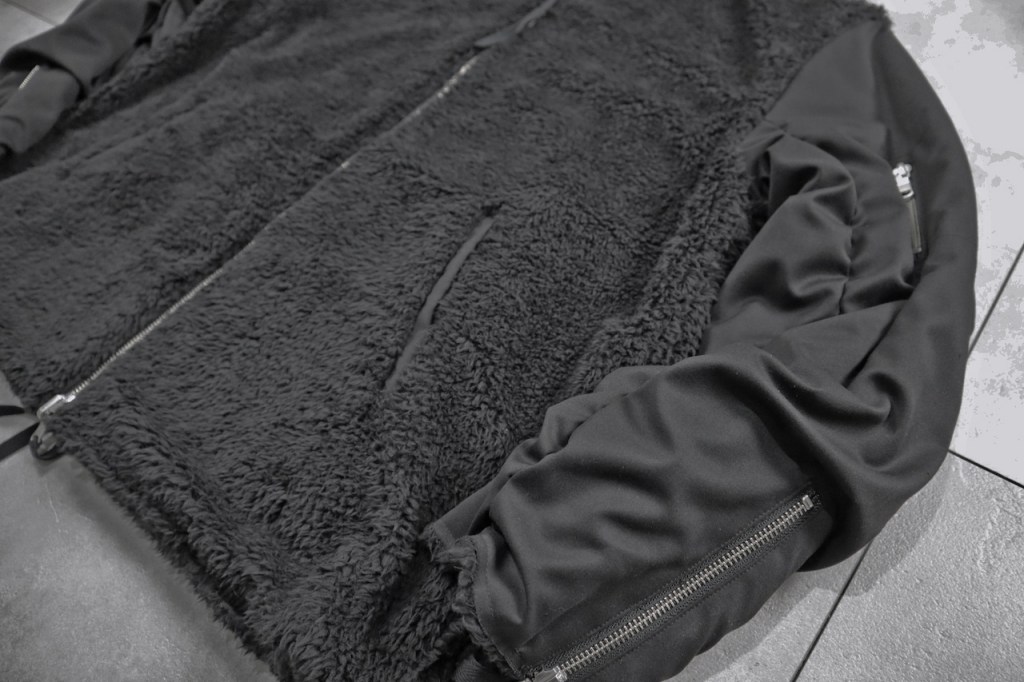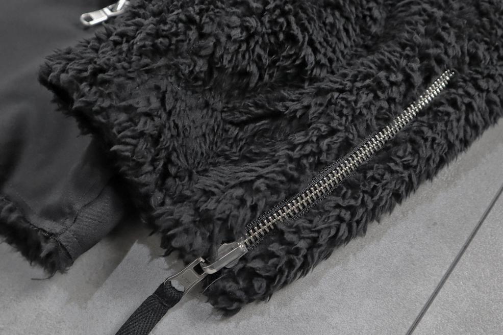 身頃も袖も全面ボア、あるいは全面ツイル地にするのではなく、それらをパネル分けしそれぞれ違うデザインを加算することでそれぞれの面で個性を与えたのです。どちらの面でも100になるように。