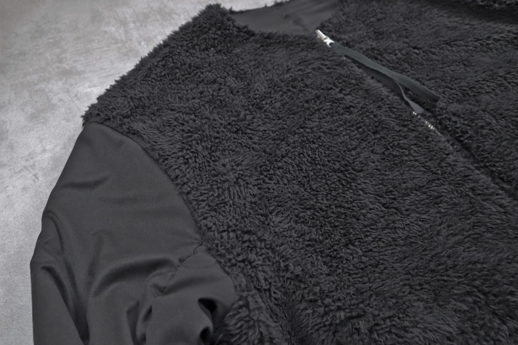 この形で素材がマットすぎるとそれこそ作業服なワーク感が漂いますし、かといってtheナイロンすぎても安っぽくてダメ。当然リバーシブルですからボアでない側の着心地も100を目指す必要があります。