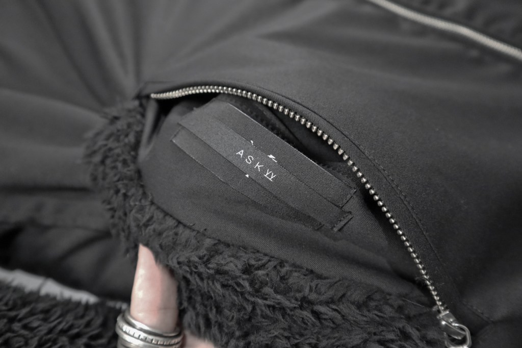 フロントのリバーシブル用ジップはよく見かけますが、袖もリバーシブルジップのものは少ないですよね。個人的にはどちらの面もASKYYらしく無機質さを残したかった為、袖にも採用しました。