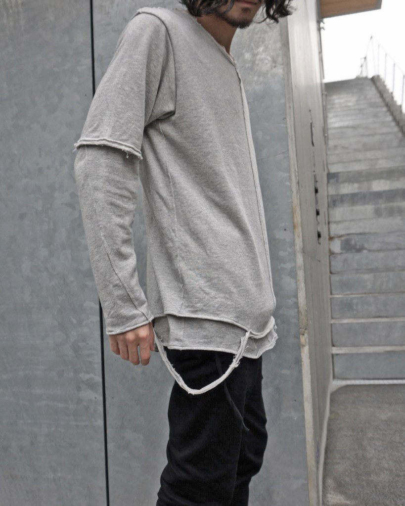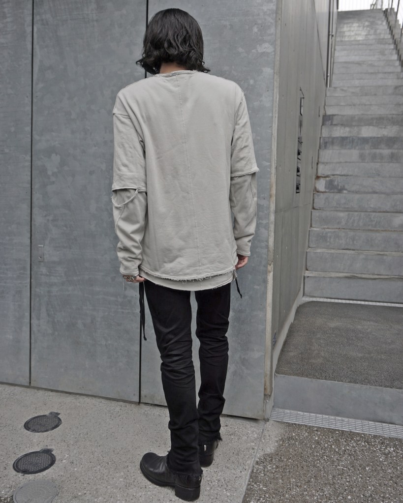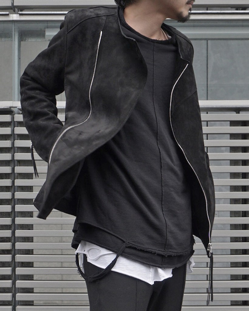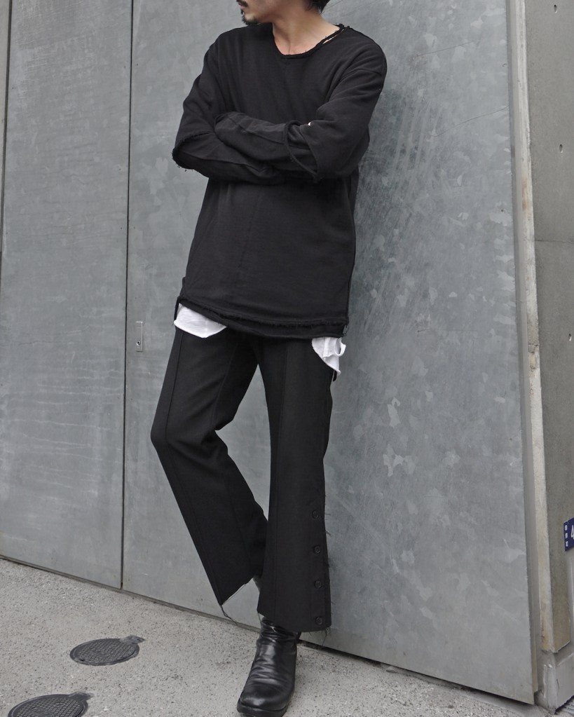 この長短によってかもしだされる抜け感やいい意味でのやんちゃ感は通常の袖口では得ることが出来ない効果かと思っております。