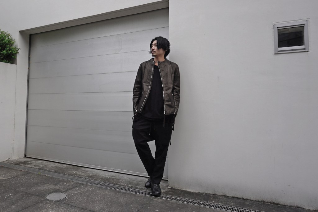 素材がレザーになるので布帛タイプよりもややタイトめな着用感になりますが、伸びも踏まえて同じサイズの選択をおすすめいたします。