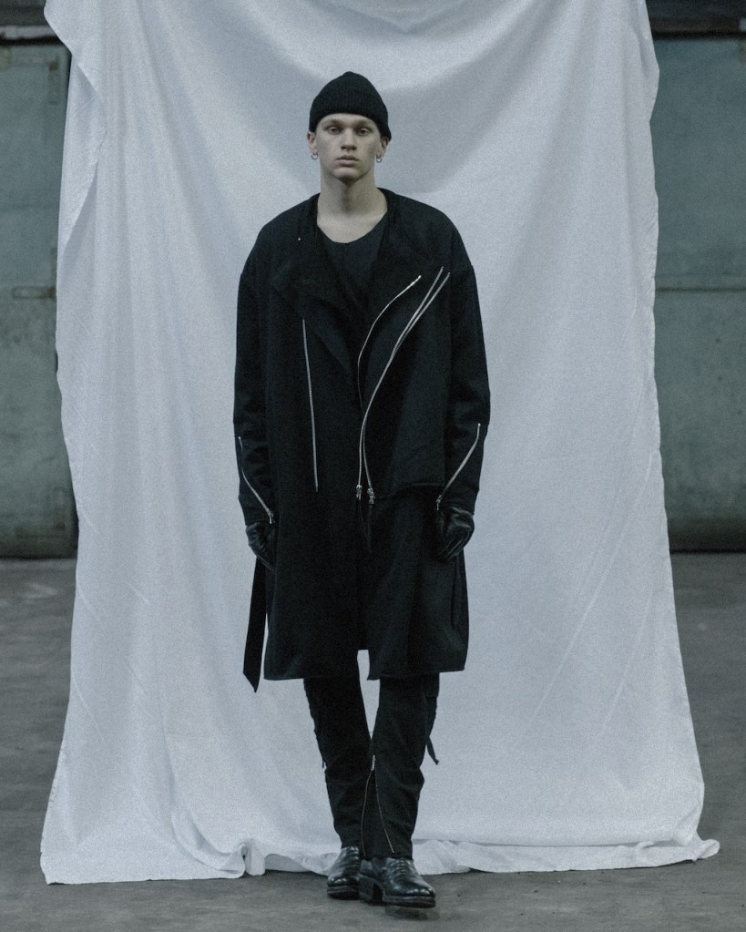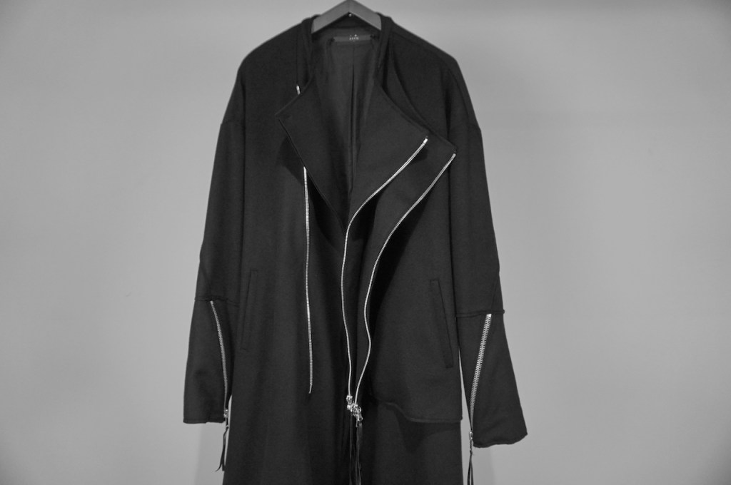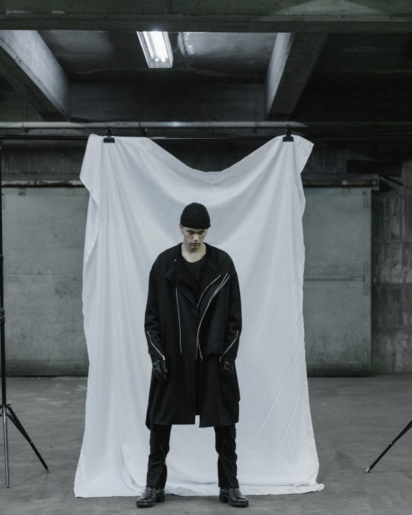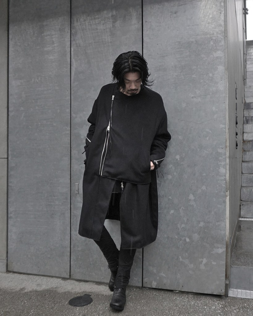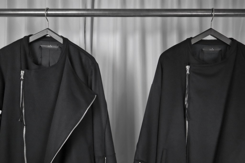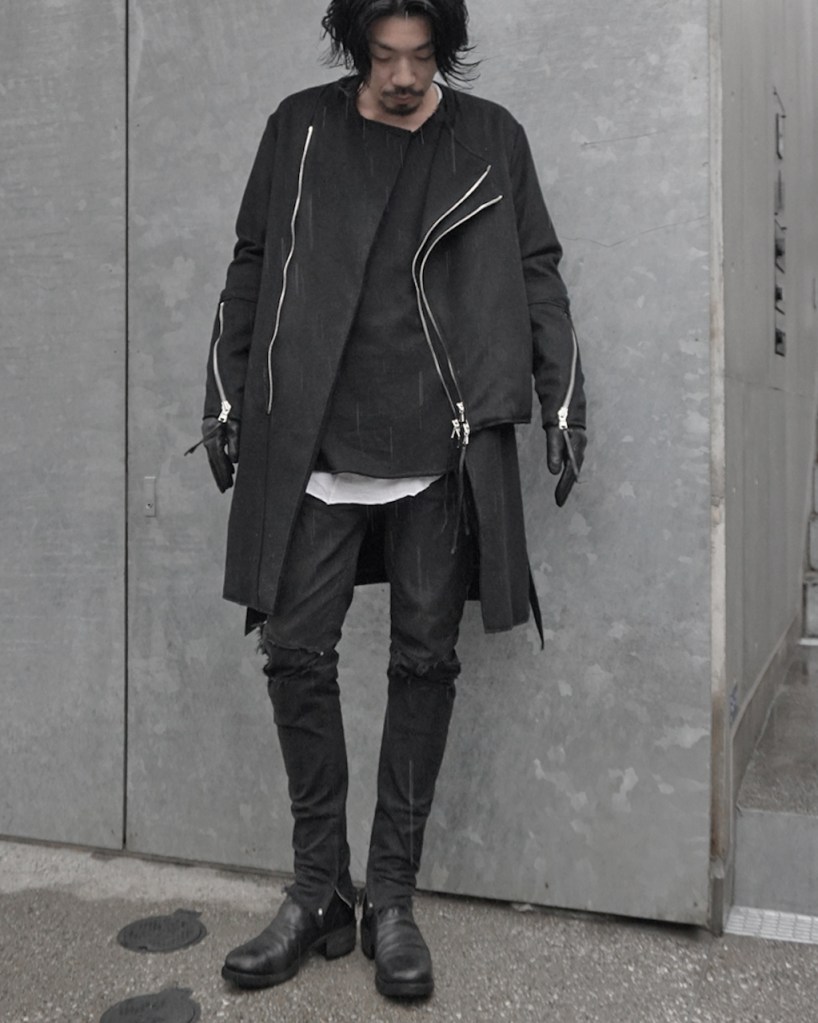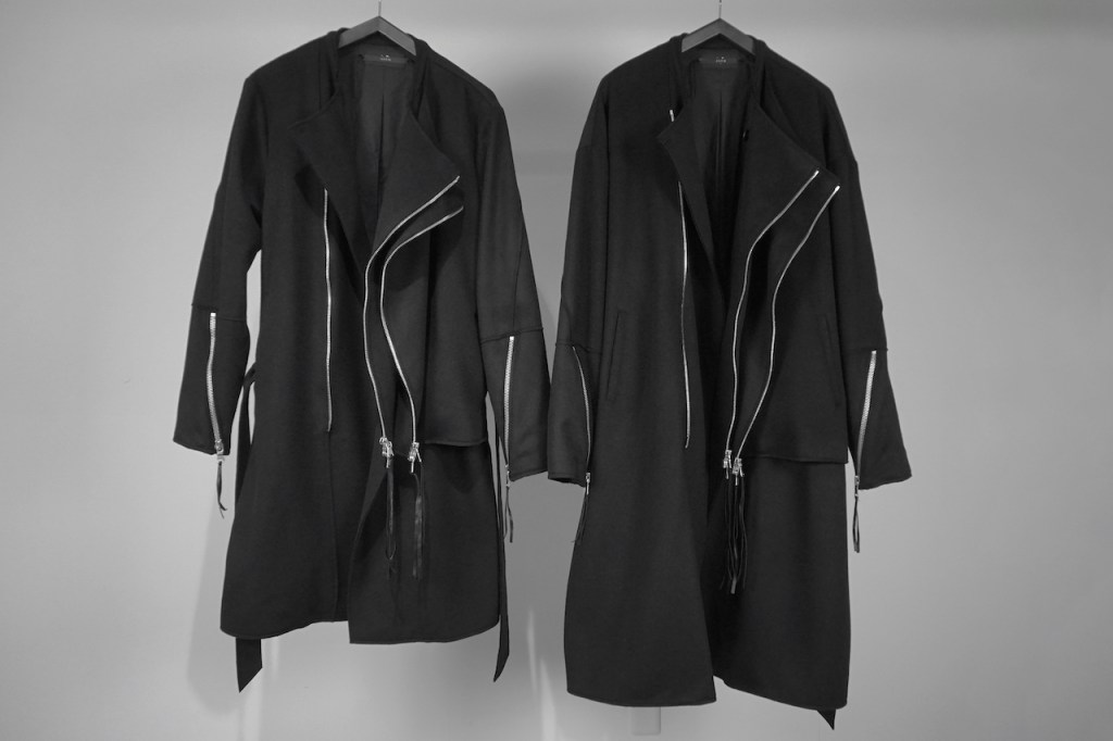CURVED ZIPPERの袖部分で用いていた長めのジップですね。フロントと袖のジップのリズム感が心地よい。