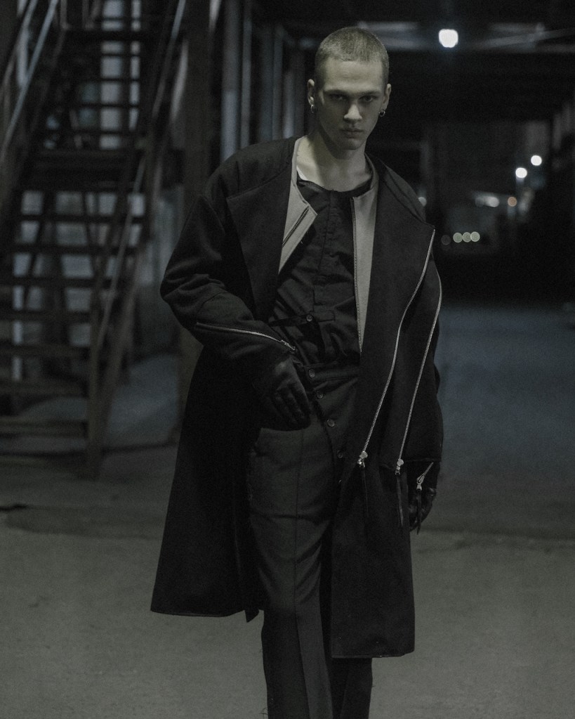 ちなみにLOOKはいずれもOVER FITを着用。どちらもアウターの上に今作を重ね着。