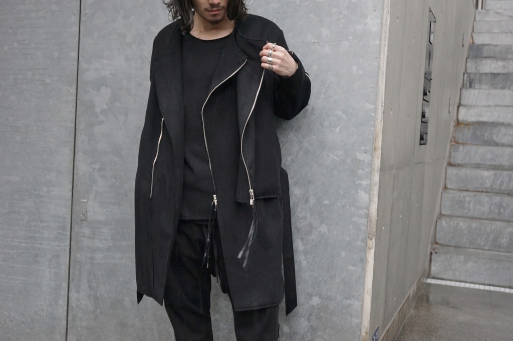 ↑メインLOOKはインナーに着用しているダブルレザーがあるため3本に見えて少々紛らわしいのですが、1.5本という特殊仕様についてここから少しずつご説明。